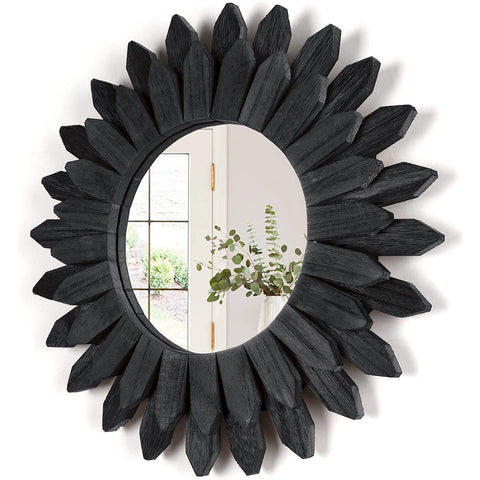 Product Information Rustic Wall Decor for Living Room—This decorative mirror made of natural solid wood, torched finished features carbonized black...