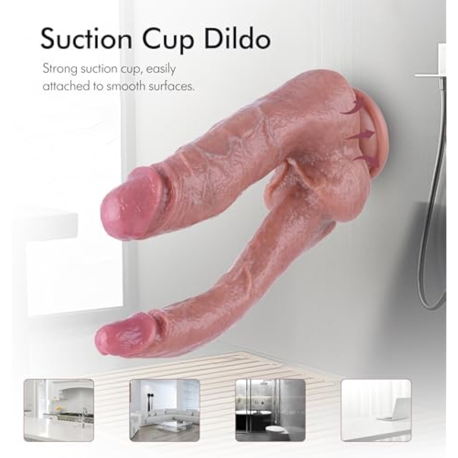 10.4" Realistic Double Dildo, 7.97" Insertable Dual-Density Silicone Dildo With Kliclok System, Dual Use Pussy Anal Penis, Hands-Free Play Soft Sex Toy - Amazing Series