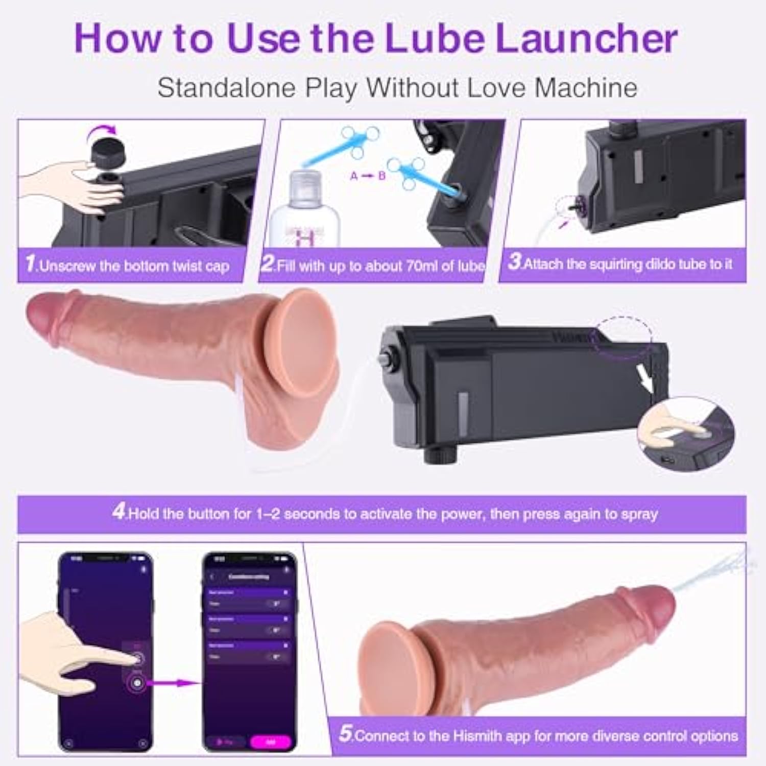| Revolutionary Auto-Lube System: Take Your Experience To The Next Level With This Automatic Lubricant Launcher Designed For Smooth, Consistent Lubrication Without Stopping Play | | An Upgrade For Your Sex Machine: Easily Mounts To Premium 3.0, 3.5, 4.0, And Servok Love Machine Models'S Leg Frame Using The Included Detachable Bracket. Fully Joins With The App For Control And Play | | Standalone Play Without A Sex Machine: No Sex Machine No Problem. This Lube Launcher Can Be Used Independently With The Included Cumtube-Equipped Or Ejaculating Dildo Or Other Squirting Dildos. This Automatic Lubricant Launcher Works Great On Its Own, You Just Enjoy A Powerful Solo Experience | | Strong Pump Performance Easy Refills: Equipped With A Powerful Internal Pump And A 70Ml Reservoir, This Lube Applicator Ensures Effective Delivery With Every Use, Also Includes A Syringe For Easy Refill. While Not Silent, It Prioritizes Power Over Quiet Operation, Ensuring Strong Bursts Every Time | | Realistic Squirting Silicone Dildo Attachment Included: Bundled With A 10.5" Realistic Squirting Dildo, Made Of Soft Silicone, While The Texture Retains Lube For Enhanced Realism. The Realistic Dildo Fitted With Durable, Leak-Resistant Tubing, And The Connector Locks Securely To The Launcher. Multiple Silicone Dildo Designs Available On Store For Your Selection | | Easy To Clean: When You’Re Finished, Just Fill The Reservoir Up Again With Water, Shake It Around A Little, And Keep Shooting Until You Empty It. Repeat The Process If You’Re Still Finding The Ejaculate Is A Little White Or Slippery | | Universal Compatibility With Multiple Machines' Leg Frame: The Included Clamp Is Designed To Fit Securely On Most Sex Machines With 25Mm Support Rods, Making It Usable With Many Sex Machines | |