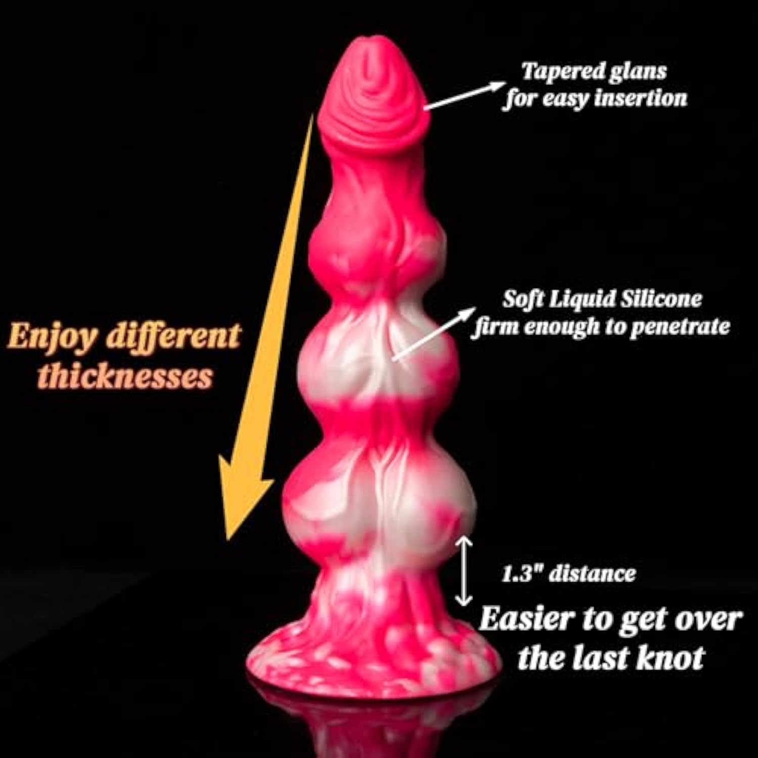 - Three Different Knot Sizes For Progressive Training! Your Monster Dildo Features Three Different-Sized Knots With Girths Of 2", 2.5", And 2.85" In Diameter; Ideal For Gradual Progression, You Can Start With The Smallest Knot And Work Your Way Up To The