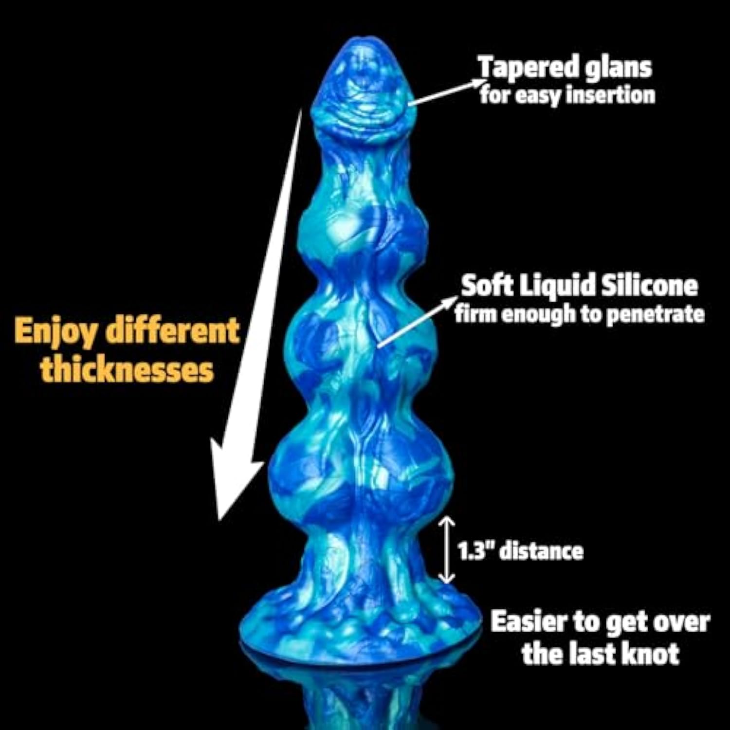 | 10 Powerful Vibration Modes! From Tip To Base, Feel Deep, Full-Bodied Vibrations. The Knotted Dildo'S Teasing Tip Stimulates Your Clit On Entry, Once Inside, Powerful Vibration Target Your G-Spot For Sexual Pleasure. The Vibrating Dildo'S Girthy Stretch Fills You, While Textured Bumps And Curves Hit Just The Right Spots - Even The Prostate - For Full Satisfaction | | Three Different Knot Sizes For Progressive Training! Your Silicone Dildo Features Three Different-Sized Knots With Girths Of 2", 2.5", And 2.85" In Diameter; Ideal For Gradual Progression, You Can Start With The Smallest Knot And Work Your Way Up To The Largest For An Enhanced And Customizable Experience. Each Knot Helps. Stretch You For The Next Knot. | | This Monster Knot Toy Is Next-Level Fun! The Three Knots Provide A Multitude Of Levels Of Fullness, And Each Knot Increases In An Appropriate Girth. So When You'Re Ready For The Next Knot, It Isn'T A Huge Leap From The Previous. The Progressive Knot Sizes Allow You To Be Adventurous And See How Much Further You Can Go—And Thanks To Its Curved Shape, It'S Perfect For Teasing And Stimulating The G-Spot With Every Thrust. | | 100% Liquid Silicone - Odor-Free Body-Safe: Crafted From Premium Liquid Silicone, This Soft Realistic Dildo Is Completely Odorless Right Out Of The Box. Its Soft, Skin-Like Surface Feels Amazing To The Touch, While The Firm Core Provides The Balance Of Flexibility And Control For Effortless Play. The Beautiful Color Scheme Adds Visual Appeal, And The Design Ensures Easy Insertion With A Comfortable, Realistic Feel. | | Strong Suction Cup Strap-On Compatible: The Powerful Suction Base Sticks Firmly To Any Smooth Surface And Stays Put Until You Decide To Release It—No Slipping, No Shifting. The Ribbed Dildo Is Also Harness-Ready, Fitting Snugly Into O-Rings Without Feeling Loose Or Wobbly, Making It Perfect For Hands-Free Or Strap-On Play. | | Fully Waterproof Easy To Clean: This Knotting Dildo Is 100% Waterproof - Great For Bath-Time Fun And Cleans Easily After Getting Off. Cleanup Is Quick And Easy With Just Soap And Water. Plus, It Comes With A Handy Remote Control For Effortless Play And More Freedom During Use. | | Discreet Packaging 2-Year : Your Stretching Dildo Arrives In Plain, Unmarked Packaging To Ensure Complete Privacy. It Includes A Black Drawstring Pouch For Easy Storage And Travel. We’Re Committed To Your Satisfaction With Fast, Responsive