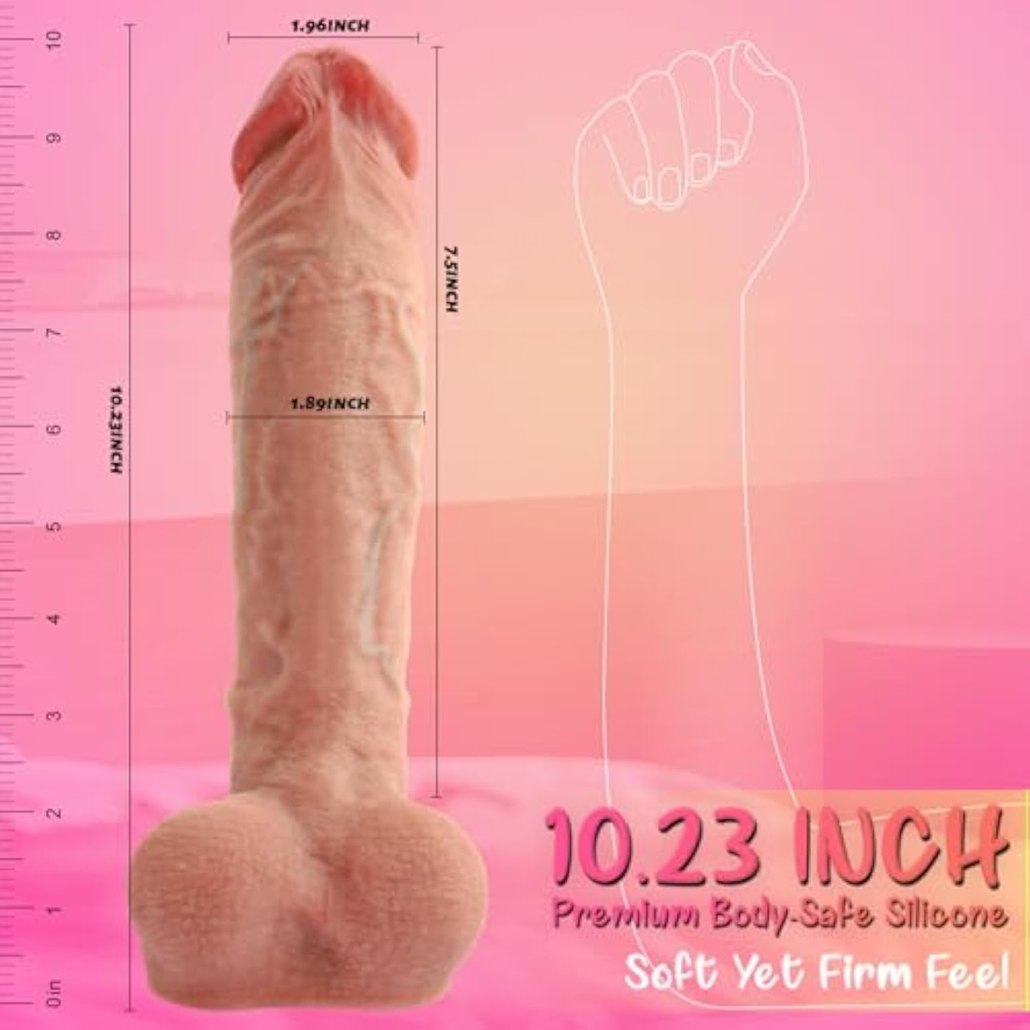 10 Inch Smooth Thick Silicone Dildo With Suction Cup, Realistic Huge Fantasy Dildo For Women & Couples Sex Toy For Hands-Free Play, Experienced To Advanced, Strap-On Compatible