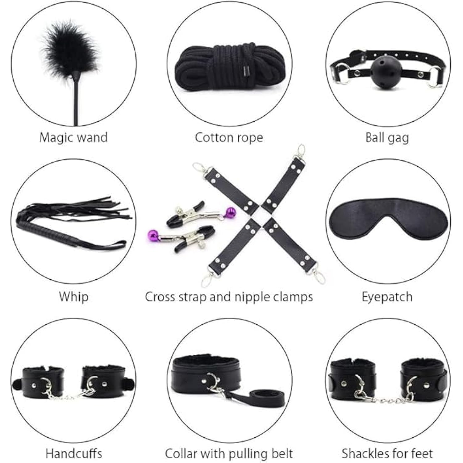 10 Pcs Bdsm Kit Sex Bondage Restraints Toys,Leather Bondage Sets Restraints Kit Sex Toys Adult Sex Bondage For Couples Sm Games.