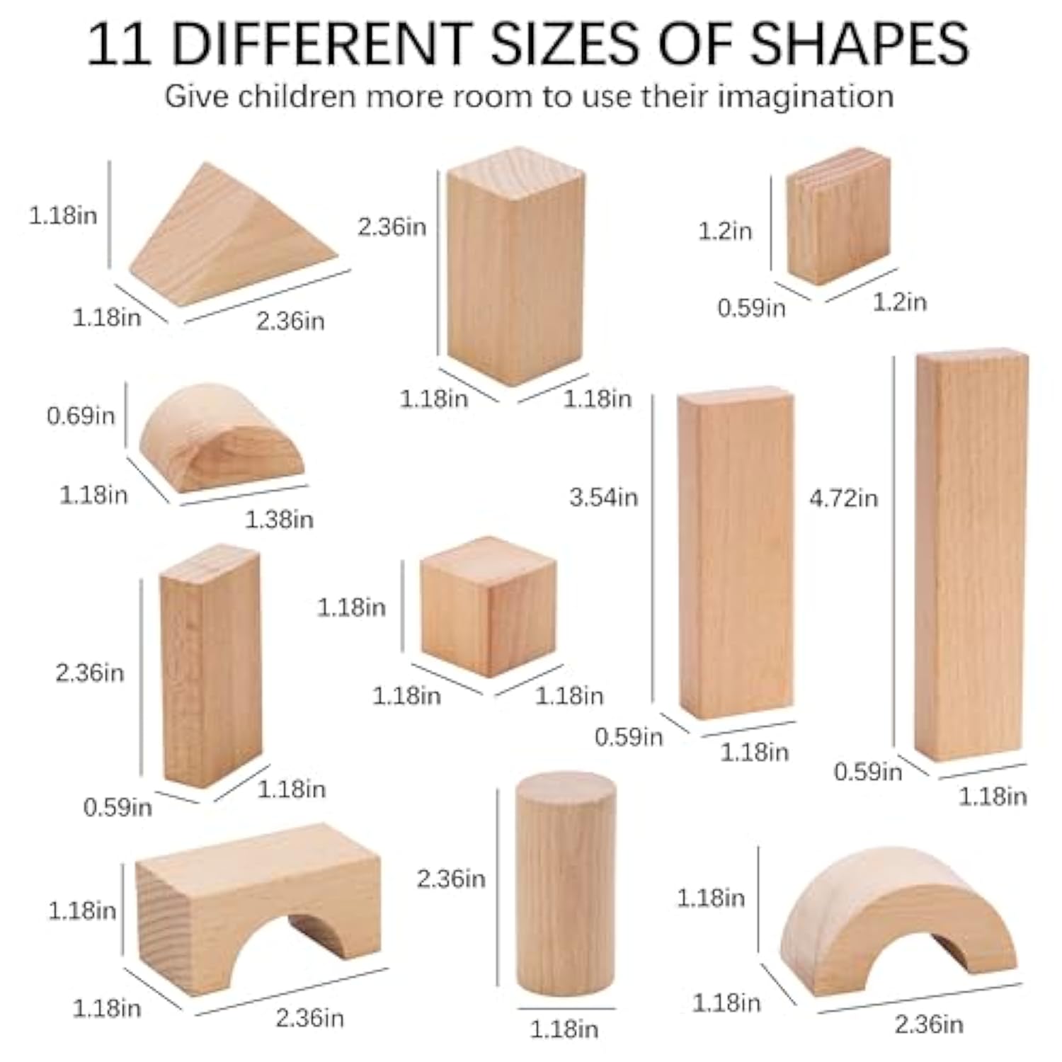 | Solid Beech Wood Blocks: 100 Pieces. Made From Durable Natural Beech Wood, This Toddler Block Set Includes 100 Pieces In 11 Unique Shapes. Great For Building Towers, Cars, Rockets, Bridges, Or Anything Kids Imagine And Create. | | Built-In Storage Bucket With Shape Sorter Lid: Comes With A Sturdy Storage Bucket That Makes Cleanup Easy. The Lid Doubles As A Shape Sorter, Adding A Fun Matching Activity While Encouraging Kids To Organize. | | Safe For Toddlers: Each Block Is Coated With Non-Toxic, Water-Based Paint And Has Smooth, Rounded Edges. Large Block Sizes Reduce Choking Risk And Are Easier For Small Hands To Grip. | | Encourages Imaginative Play Fine Motor Skills: Classic Stacking Blocks Help Toddlers Develop Coordination, Shape Recognition, And Creativity. Kids Learn Through Hands-On Play While Building And Sorting. | | Montessori-Inspired Learning Toy: A Versatile Early Learning Toy For Home Or Classroom Use. Makes A Thoughtful Gift For 1, 2, Or 3 Year Olds—Supports Open-Ended Play For Boys And Girls. | |