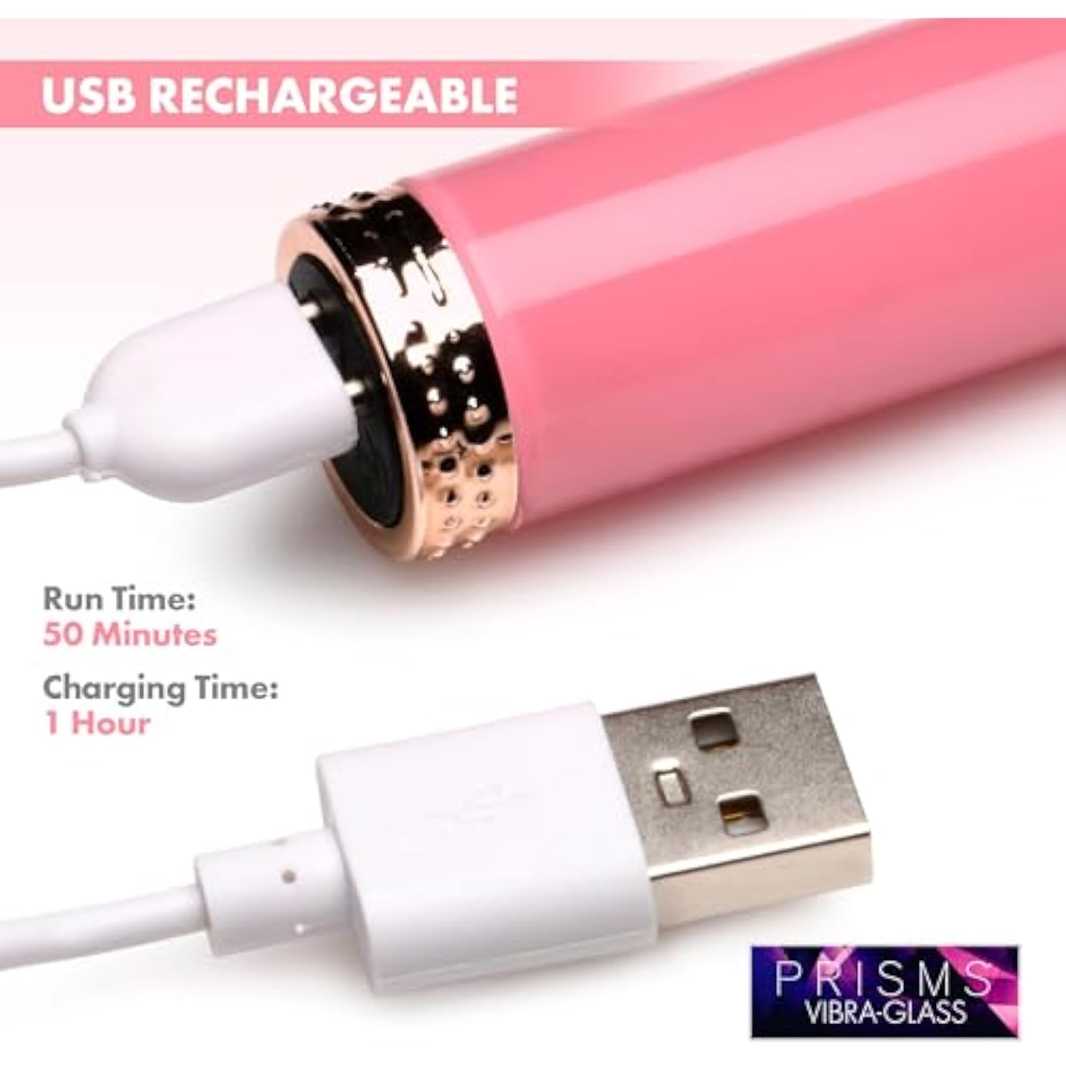 10X Vibra-Glass Mini G-Spot Vibrator For Men Women & Couples, Made With Durable Borosilicate Glass Non-Allergenic Rechargeable Splashproof Ipx5. 3 Piece Set - Pink