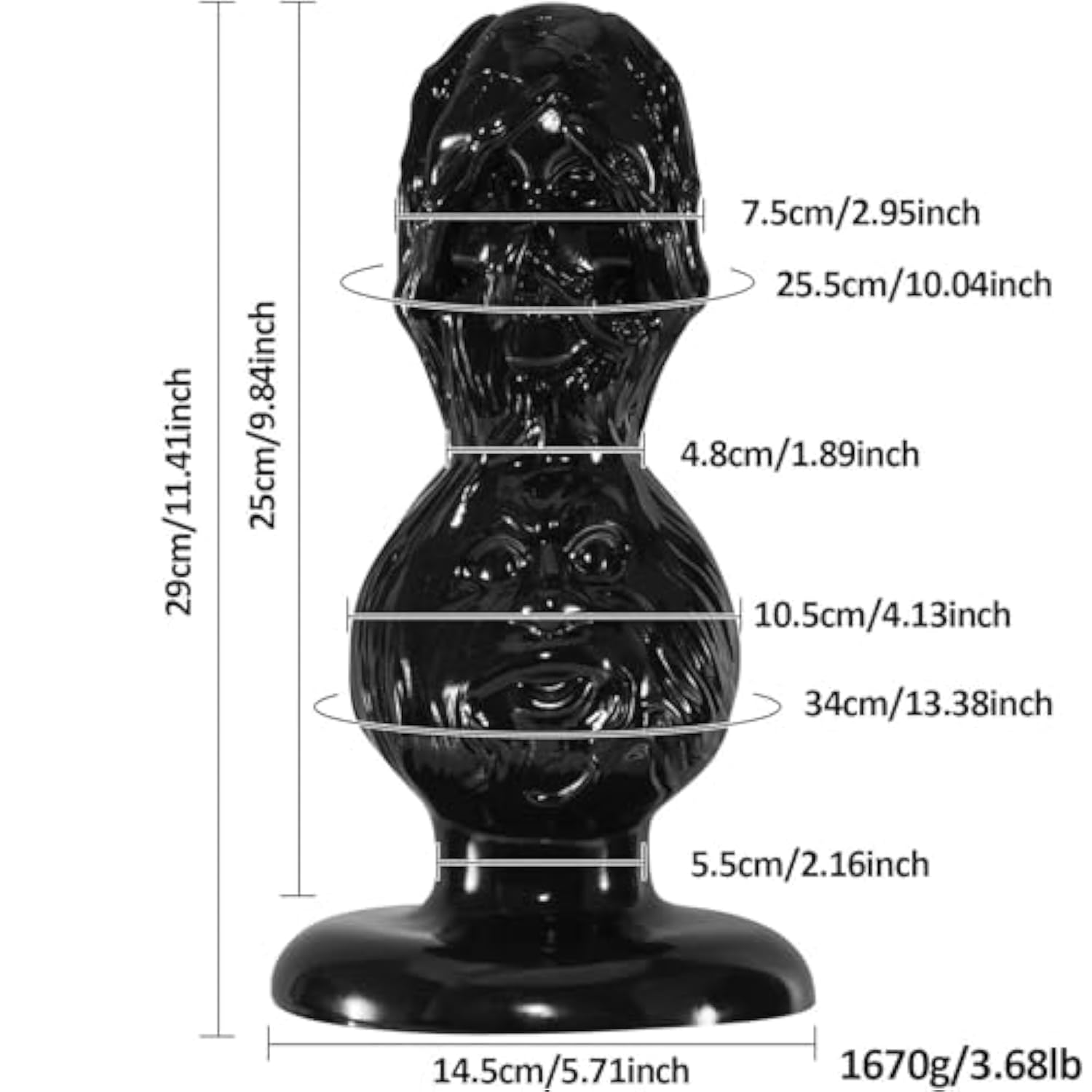 | Special Shape Xxl Extra Big Anal Plug - This Ultra Large Butt Plug Measures 11.41*4.13 Inches And Weighs 3.68Lbs, With Different-Size From The Top To The Bottom, Offers A Full And Satisfying Sensation For Those Who Enjoy Anal Play, Dilating Anus, Vaginal Masturbation Or Prostate Massage. It Has The Unique Heads Shape And The Different Patterns On The Surface To Increase Stimulation. Its Length And Girth Provide Ample Stimulation. Not Only Sex Toy For Women, But Also For Men, Gay, Lesbian, Couples. | | Powerful Suction Base For Hands-Free Play - This Super Big Anus Dilator Has An Extra Wide And Strong Suction Cup Which Can Be Attached To The Smooth Flat Surface, You Can Use It Hands-Free, Liberation Of Your Hands. | | Flexible Pvc Material - This Anal Toy Is Made Of Pvc Material, Which Is Flexible; It Boasts The Significant Girth, Perfect For Deep Anal Training, G-Spot Stimulation, Or Prostate Massager, Providing An Exciting And Challenging Experience From Beginners To The Experts, And Even The Most Advanced Users Or Masters. Different-Size Designed For Better Anus Expand, Which Helps You To Reach The Orgasm You Desire. | | Fully Waterproof - Recommended Use It With Water-Based Lubricant For Better Experience. Or You Can Have Some Different Pleasure While You Taking Shower Or Siting On The Bathtub. After Used It Can Be Cleaned With Soap Water Easily, And Keep It Dry. | | Secret And Discreet Box Packaging - This Sex Toy Will Come In Secret And Discreet Box, Without Any Trace Of Sensitive Tags/Words To Protect Your Privacy. If You Have Any Question, Please
