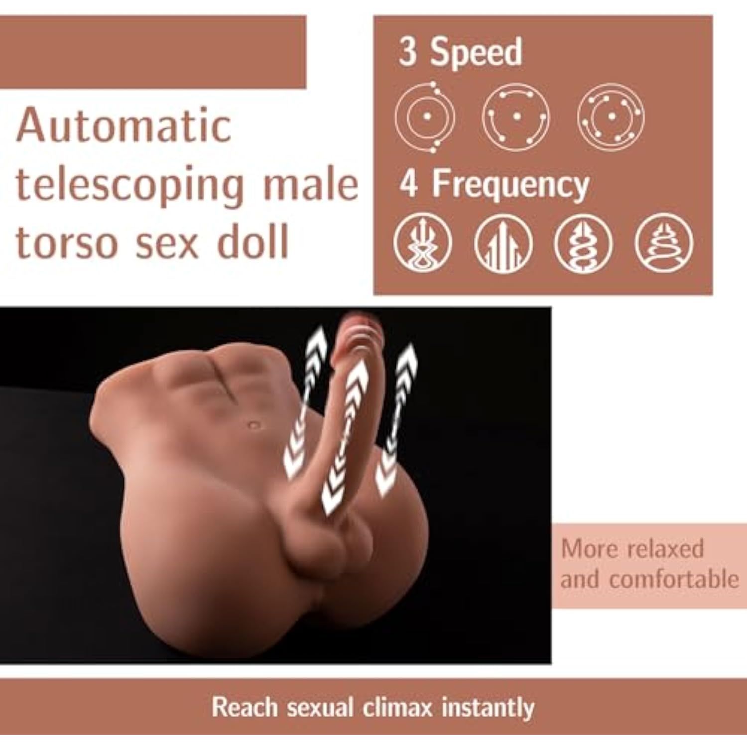 11.5Lb Male Sex Doll With Auto-Telescoping Dildo, 2 In 1 Realistic Sex Doll For Women With Huge 7.1In Cock & Tight Anal, Unisex Masturbator Sex Toy For Women Men Gay Couple Sex Fun, Brown