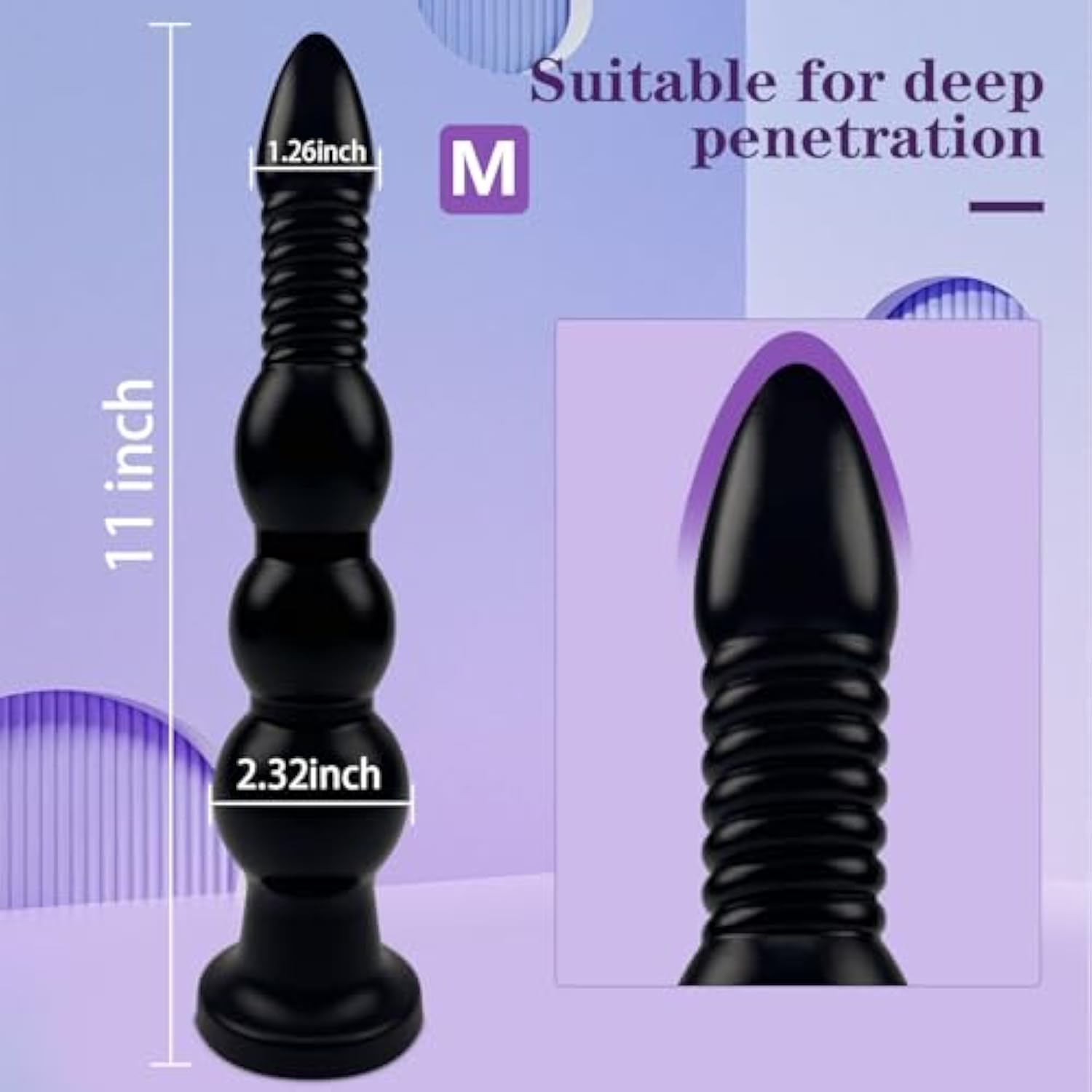11 Inch Anal Beads Trainer With Suction Cup Black Silicone Butt Plug Cone Anal Stretcher Prostate Massager Dilator Sex Toy For Women Men Masturbation (M)