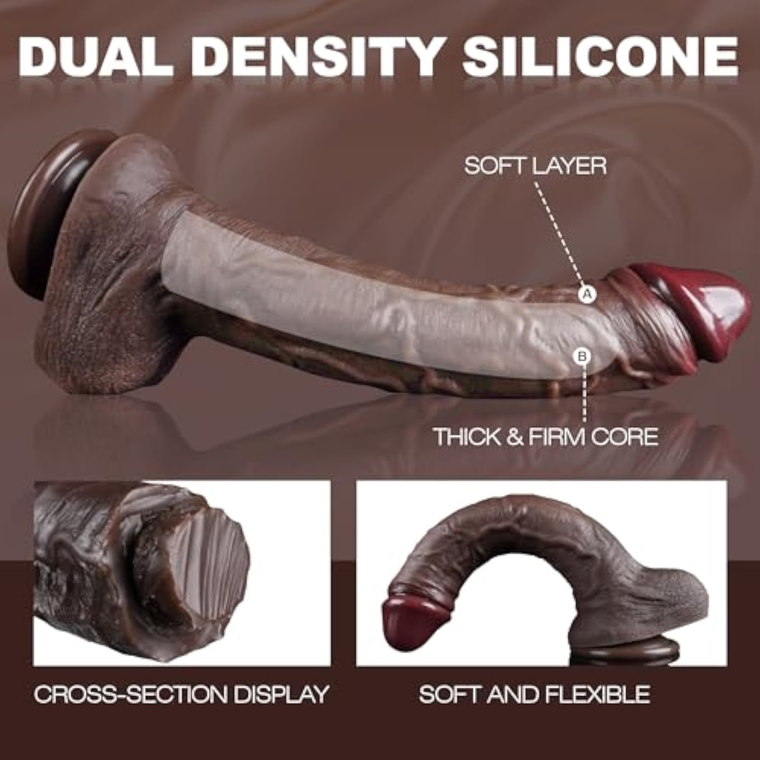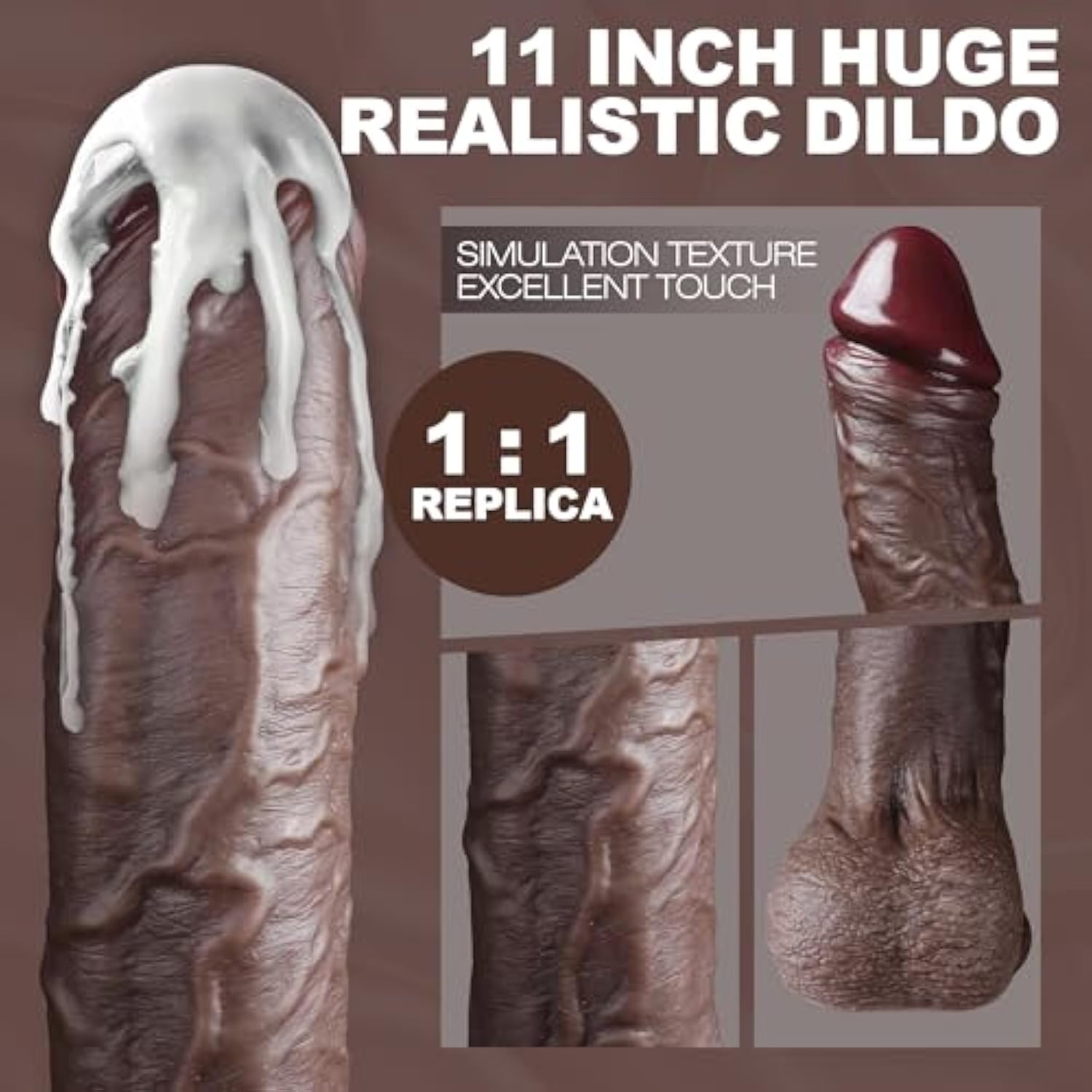 11 Inch Long Realistic Big Black Dildo, Xxl Huge Bbc Thick Dual Density Dildo With Strong Suction Cup, Giant Soft Silicone Real Skin Adult Toy, Large Anal Sex Toys For Women Men Gay