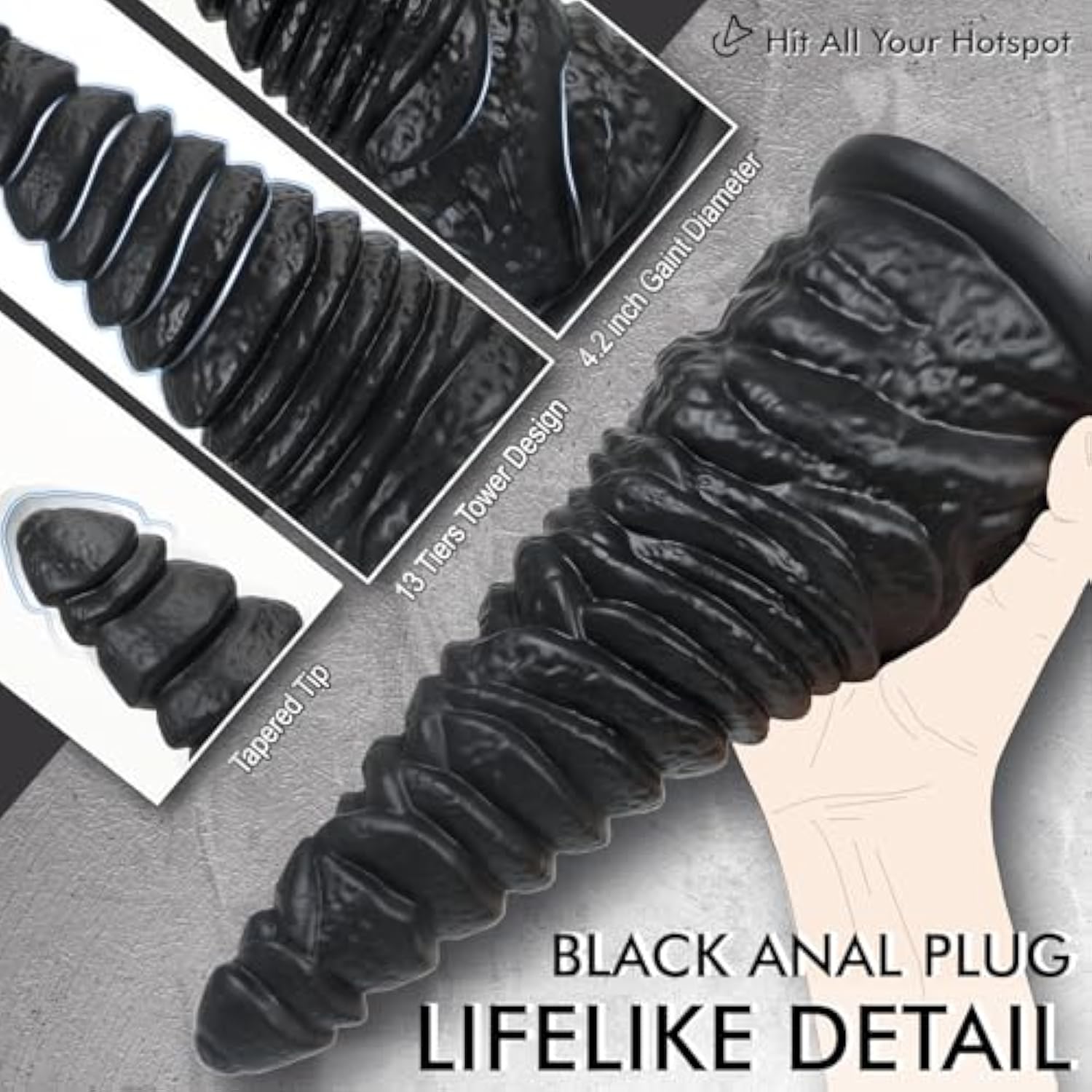 - Gradual Experience Upgrade: Elevate Your Anal Play With Our Massive Black Tapered Anal Plug, Featuring A 13-Tier Expansion From 1.2 To 4.2 Inch. Each Layer Is Designed For Comfort, Allowing You To Enjoy Deeper Sensations Step By Step. The Huge Anal Plug