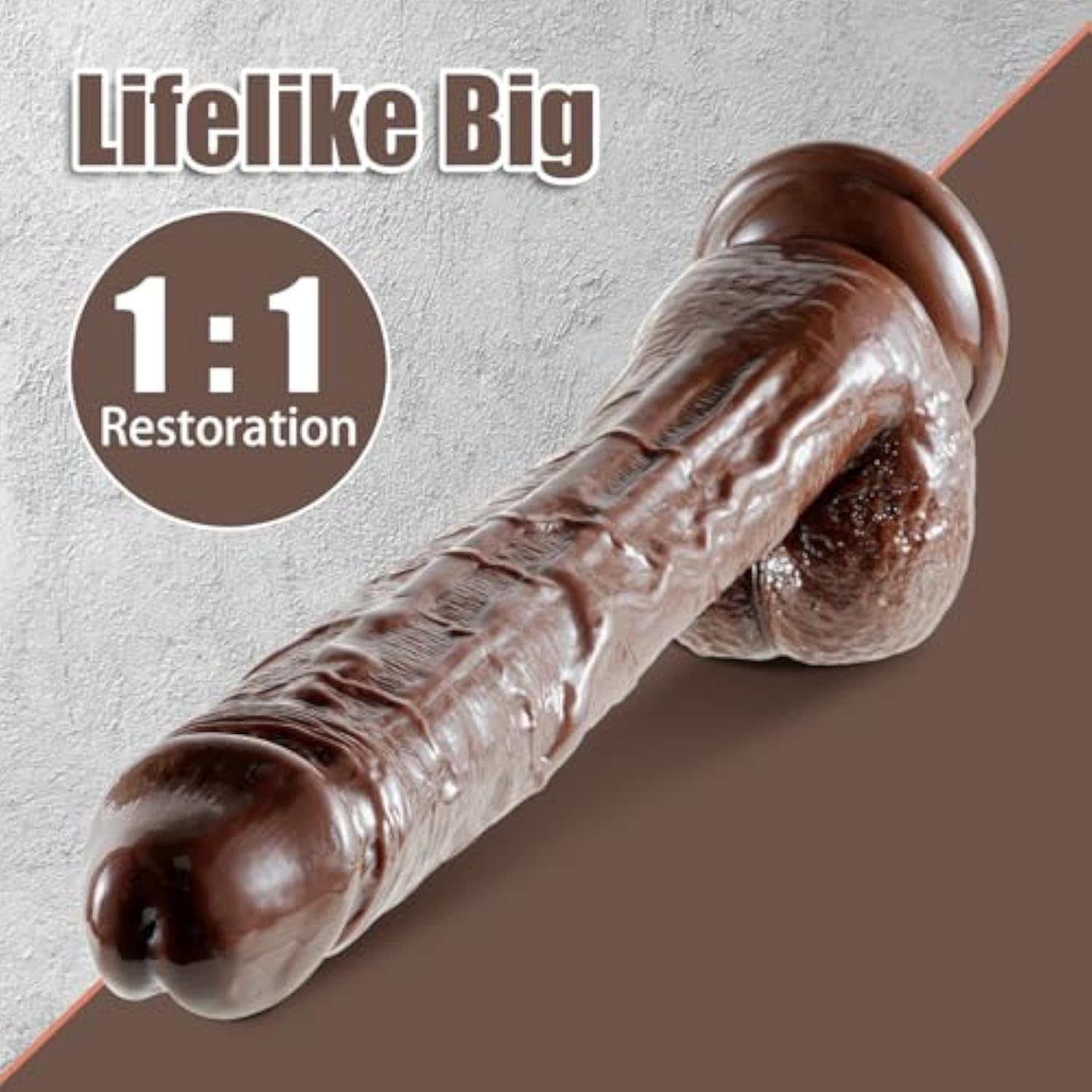 12.2 Inch Realistic Dildo, Huge Size Monster Dildo With Strong Suction Cup For Men Women Gay Hands-Free Anal Play, Flexible Thick Dong Adult Sex Toy For Advanced, Brown