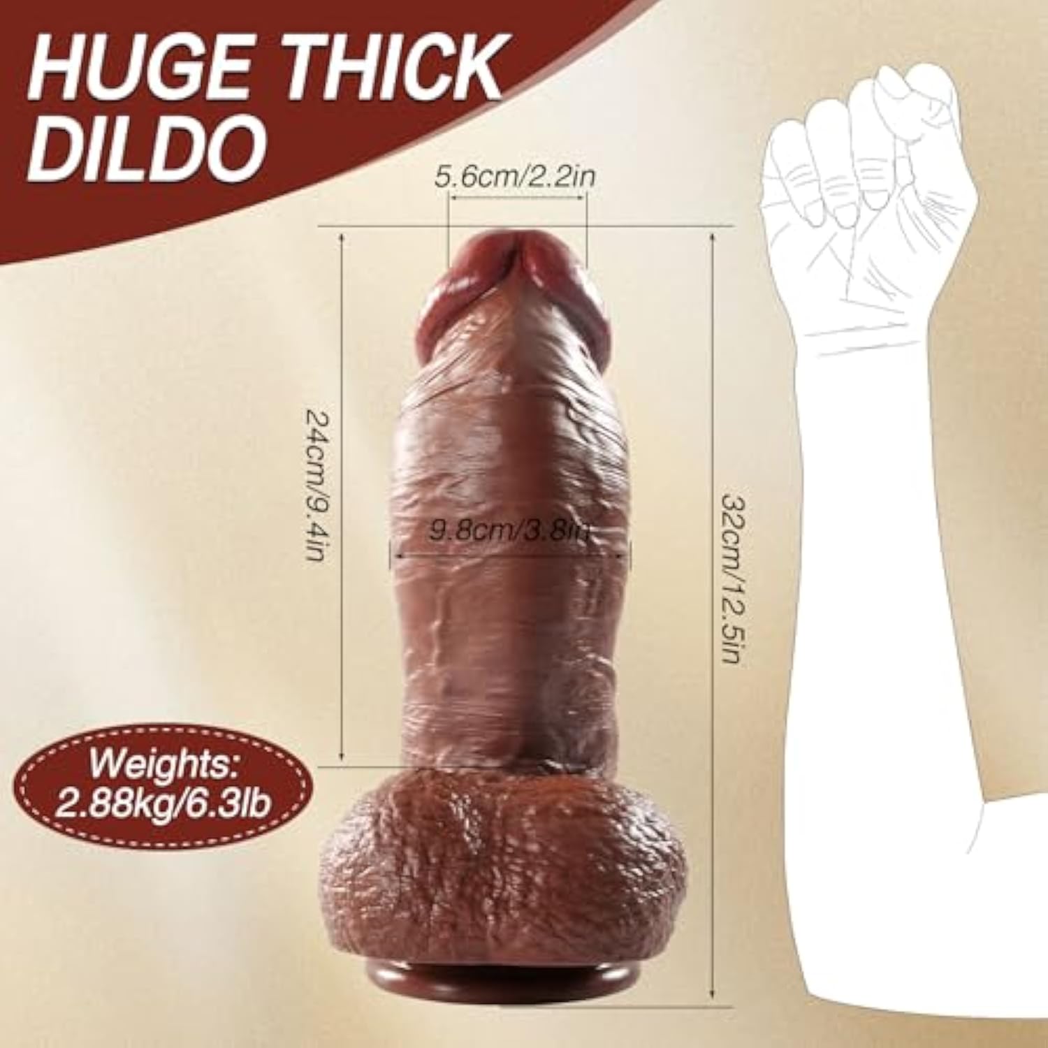 Realistic Design:This Real Skin Dildo Simulates The Design Of A Real Dildo With A Rounded Glans, Soft Realistic Skin Texture And 3D Vein Shaft And Balls.Every Detail Has Been Carefully Designed To Make You Feel As Intimate And Passionate As The Realistic Dildo! | | Extra Large Dildo: This Big Dildo Is 12.5 Inches Long And Can Be Inserted Up To 9.4 Inches Long And 3.8 Inches In Diameter. The Slightly Upward Curvature Enhances Deep Penetration For Precise G-Spot Stimulation. | | Material:This Xl Dildo Is Made Of Upgraded Pvc Material, Real Soft Skin Texture Similar To Silicone Material. Odorless, Oil-Free, Safe, Soft, Flexible, Easy To Clean And Durable.Ensure Peace Of Mind Every Time You Use It And Let This Realistic Bbc Dildo Fulfill All Your Needs. | | Strong Suction Cup Base: You Can Attach The Suction Cup Dildo Firmly To The Smooth Surface, Freeing Your Hands.Whether You Use It Alone Or With A Partner, This Curved Dildo Allows You To Effortlessly Explore New Positions And Sensations In Any Space. | | Discret Packaing:We Take Your Privacy And Confidentiality Needs Very Seriously. No One Will Know What It Is And There Will Be No Text Or Graphics On The Product Packaging. | |