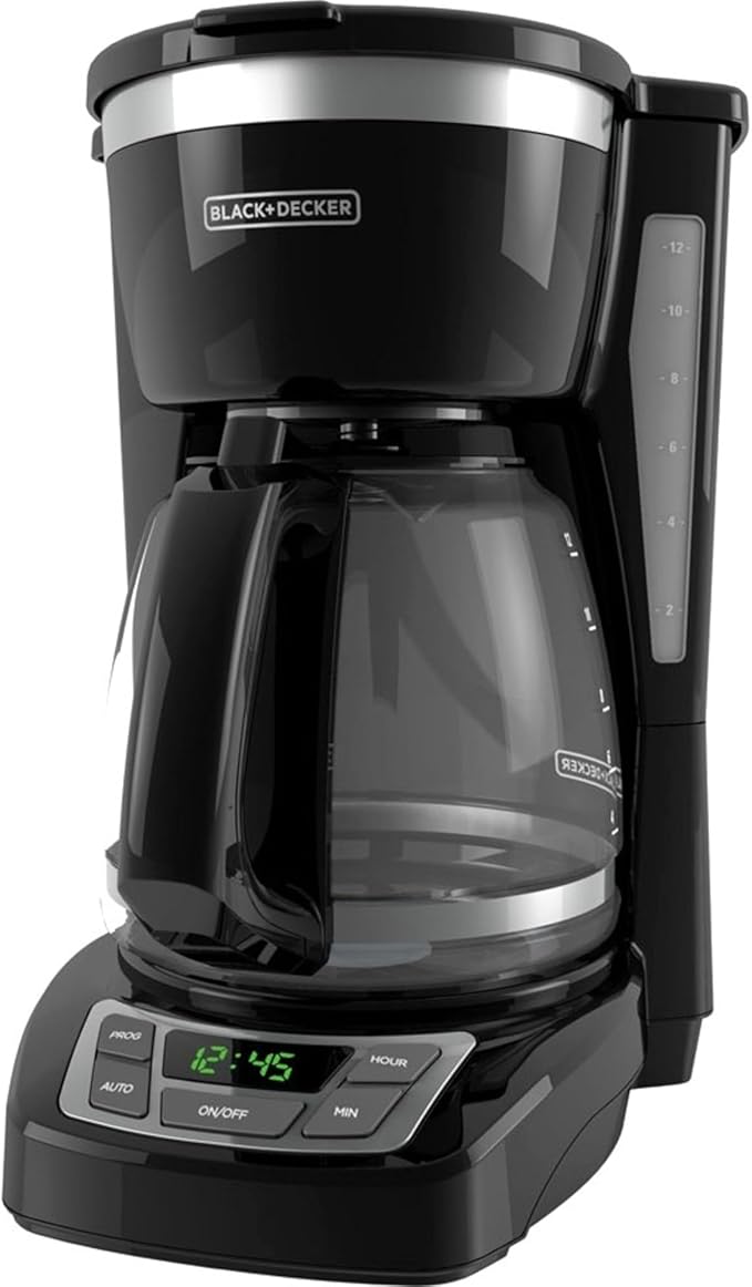 12-Cup Digital Coffee Maker, Programmable, Washable Basket Filter, Sneak-A-Cup, Auto Brew, Water Window, Keep Hot Plate, Black