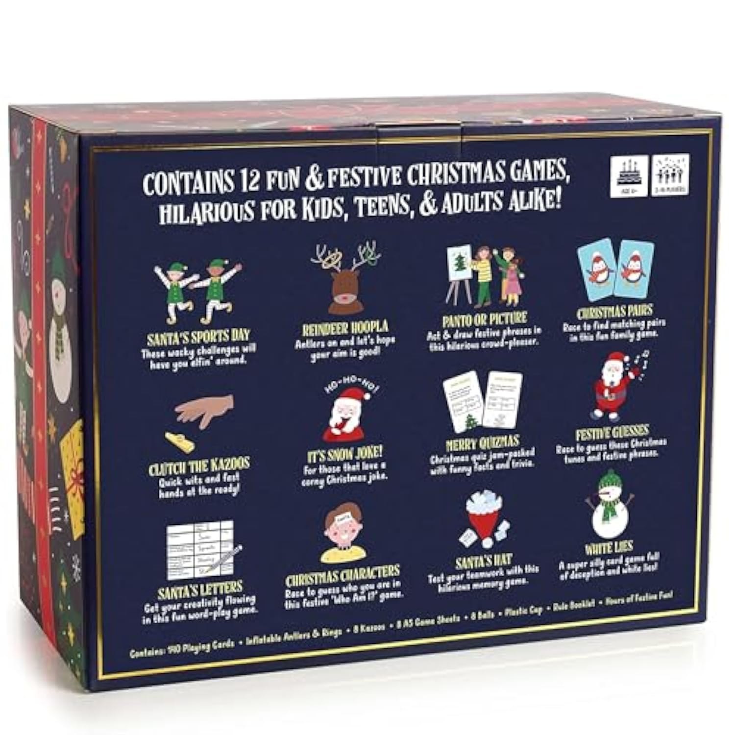 12 Hilarious Party Games – Contains Everything You Need To Play: Reindeer Antler Ring Toss, Santa’S Sports Day, Merry Quizmas, It’S Snow Joke!, Panto Or Picture, Christmas Pairs, Clutch The Kazoos, Festive Guesses, Santa’S Letters, Christmas Characters, Santa’S Hat, And White Lies.