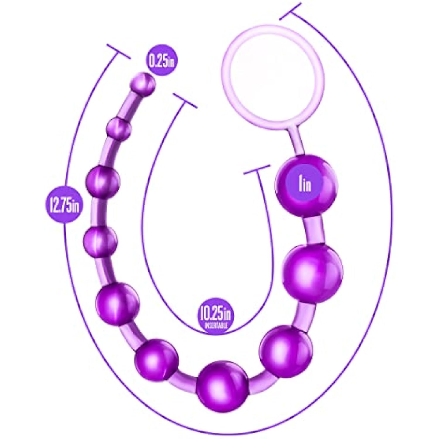 12 Inch Long Silicone Anal Bead For Smooth & Seamless Anal Training - Graduated Beads Up To 1" Maximum Width - Beginners Prostate Play Sex Toys For Adults - Clear Purple