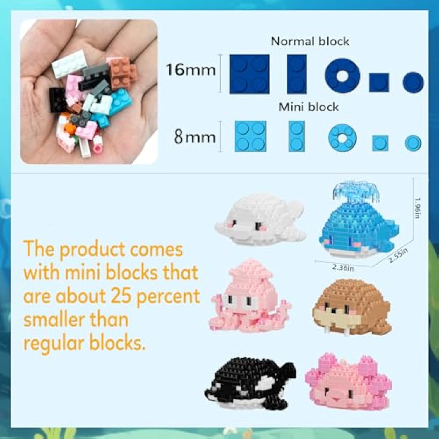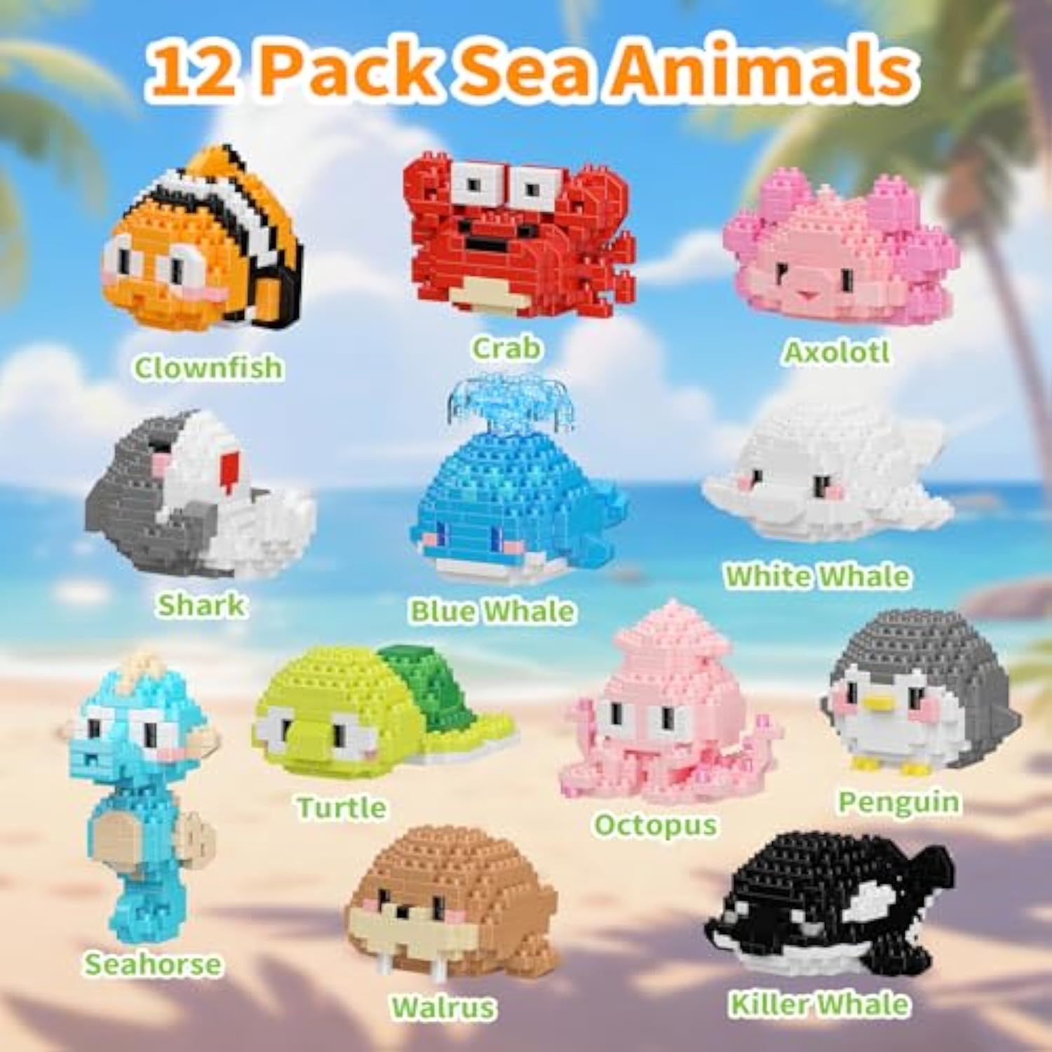 | 12 In 1 Party Favors For Kids 8-12 - These Cute Sea Animals Building Sets Includes 12 Marine Animals Building Sets In Turtle, Clownfish, Crab, Axolotl, Shark, Blue Whale, White Whale, Seahorse, Octopus, Penguin, Walrus, Killer Whale It Can Prove Infinite Surprise And Keep Kids Entertained For Hours. | | Mini Building Block Sets?The Small Sea Animal Is Made Of 2642 Pieces Top Quality Mini Building Bricks. Compared With The Traditional Size Building Sets, This Animal Party Favors Toys For Kids Has Better Compactness, Higher Occlusion Between The Building Blocks. Please Noted That This Is The Mini Micro Building Blocks, Which Means Some Of The Blocks Is Less Than 10Mm | | Easy To Assemble?This Micro Building Kit Comes With A Detailed Color Instruction Which Is Clear And Easy To Follow.We Suggest You Hold The Pieces With A Tweezer (Not Included) | | Stem Educational Toy?Suitable For Children Ages 12+ 14+, It Can Spark Your Children'S Creative Imaginative Play, Cultivate Child'S Concentration, Enhance Hand-Eye Coordination And Problem-Solving Skills. It May Have Certain Difficulty For Younger Kids, Sometimes They Need Help Under Adult’S Help. Also It'S A Leisure Game For Adults, Funny And Reduce Pressure. Good For Display, Great Gift For One Who Love Mini Building Blocks | | Ideal Birthday Gift For Boy Girl? It Made Of Non-Toxic Material Which Is No Harm To Users. No Pungent Odor, Smooth Without Burrs, Sturdy And Stable. It'S An Cute Gift For Christmas, Children'S Day, Birthday, New Year Party And Other Holidays. | |
