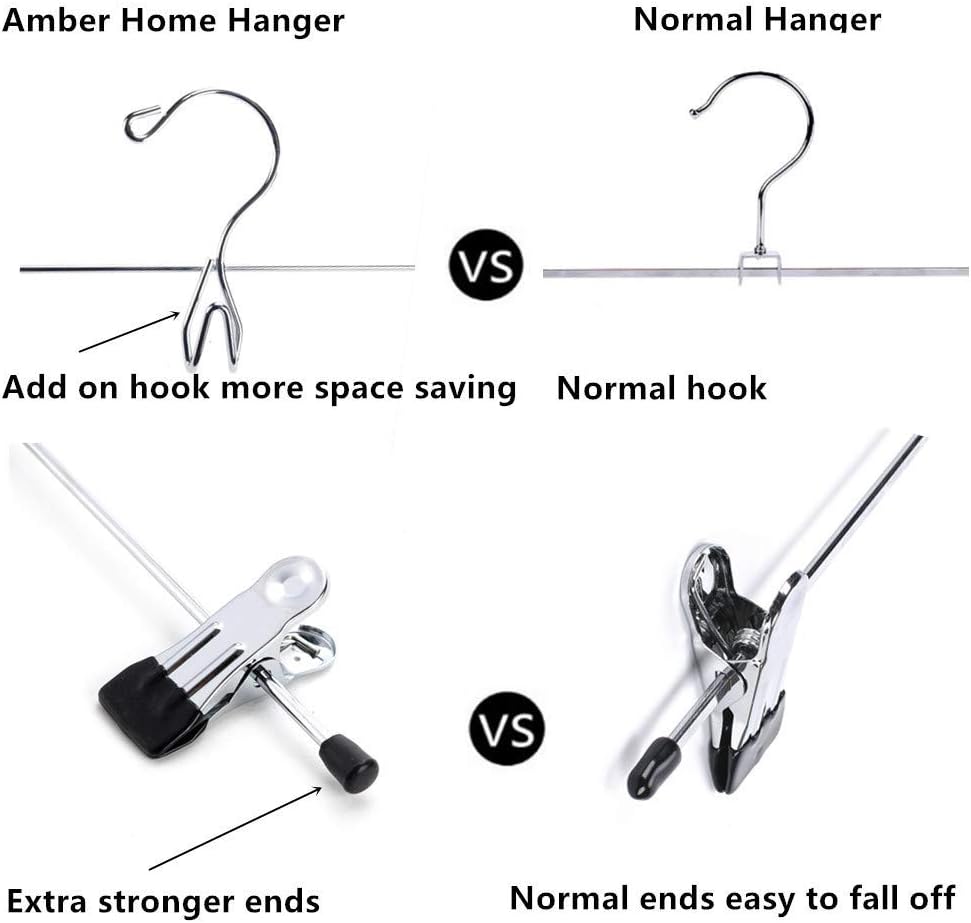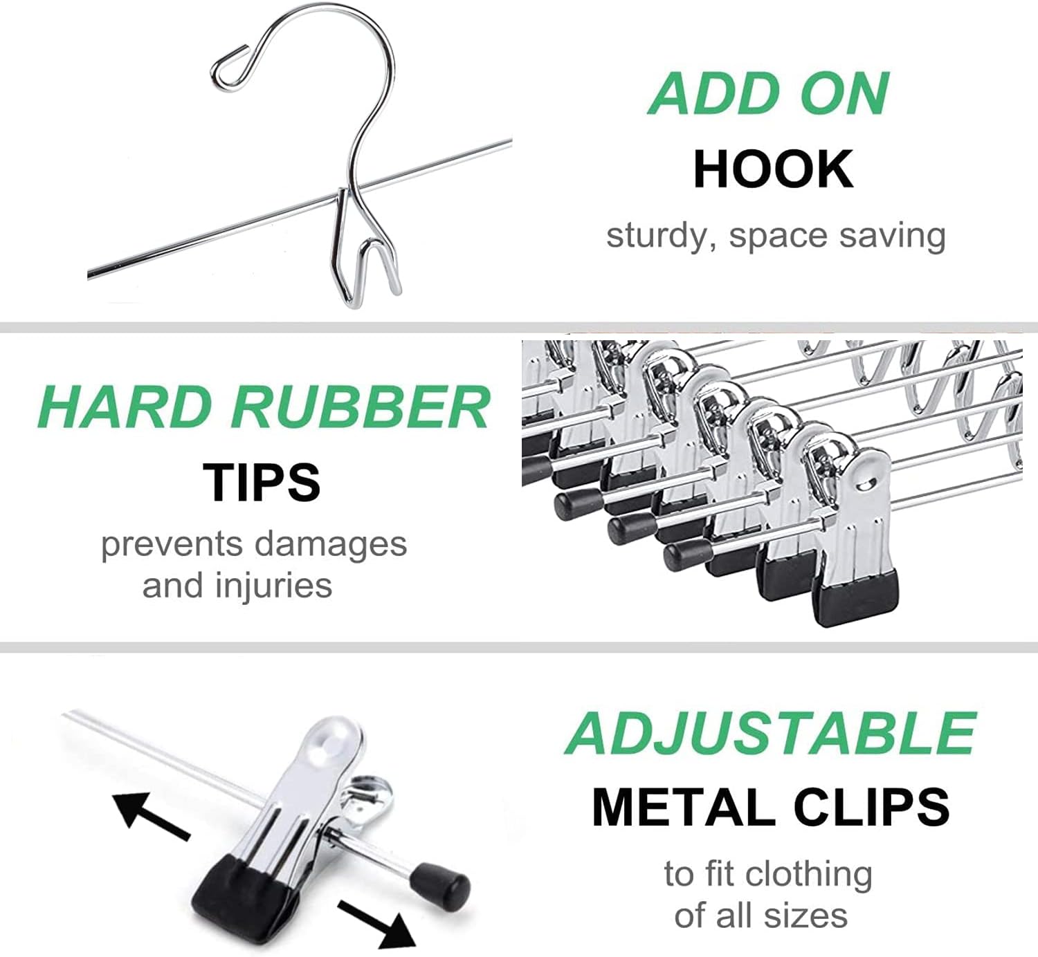 12 Pack Heavy Duty Add on Metal Pants Skirt Hangers, Stackable Add-on Metal Clothes Hangers with 2-Adjustable Clips, Cascading Clip Hangers Space Saving for Jeans, Slacks