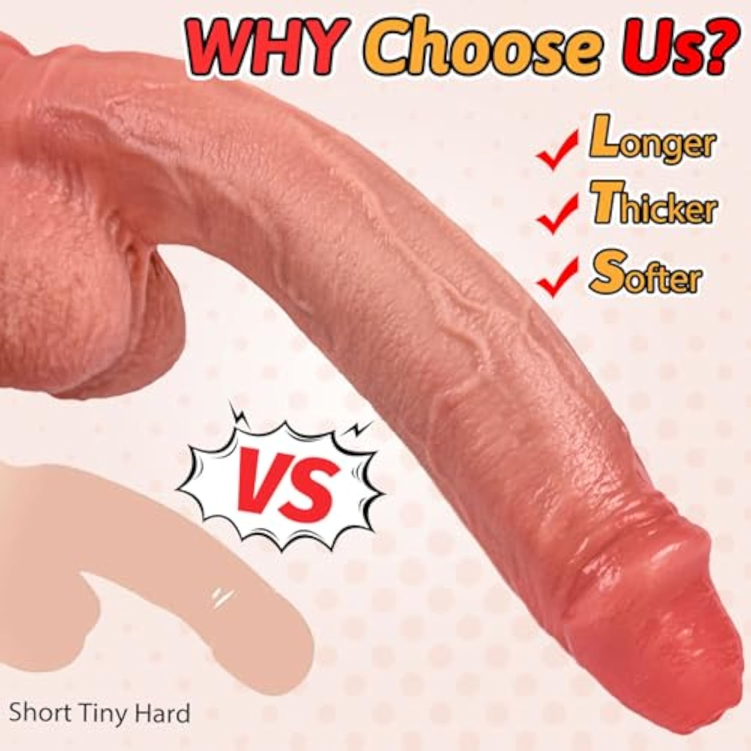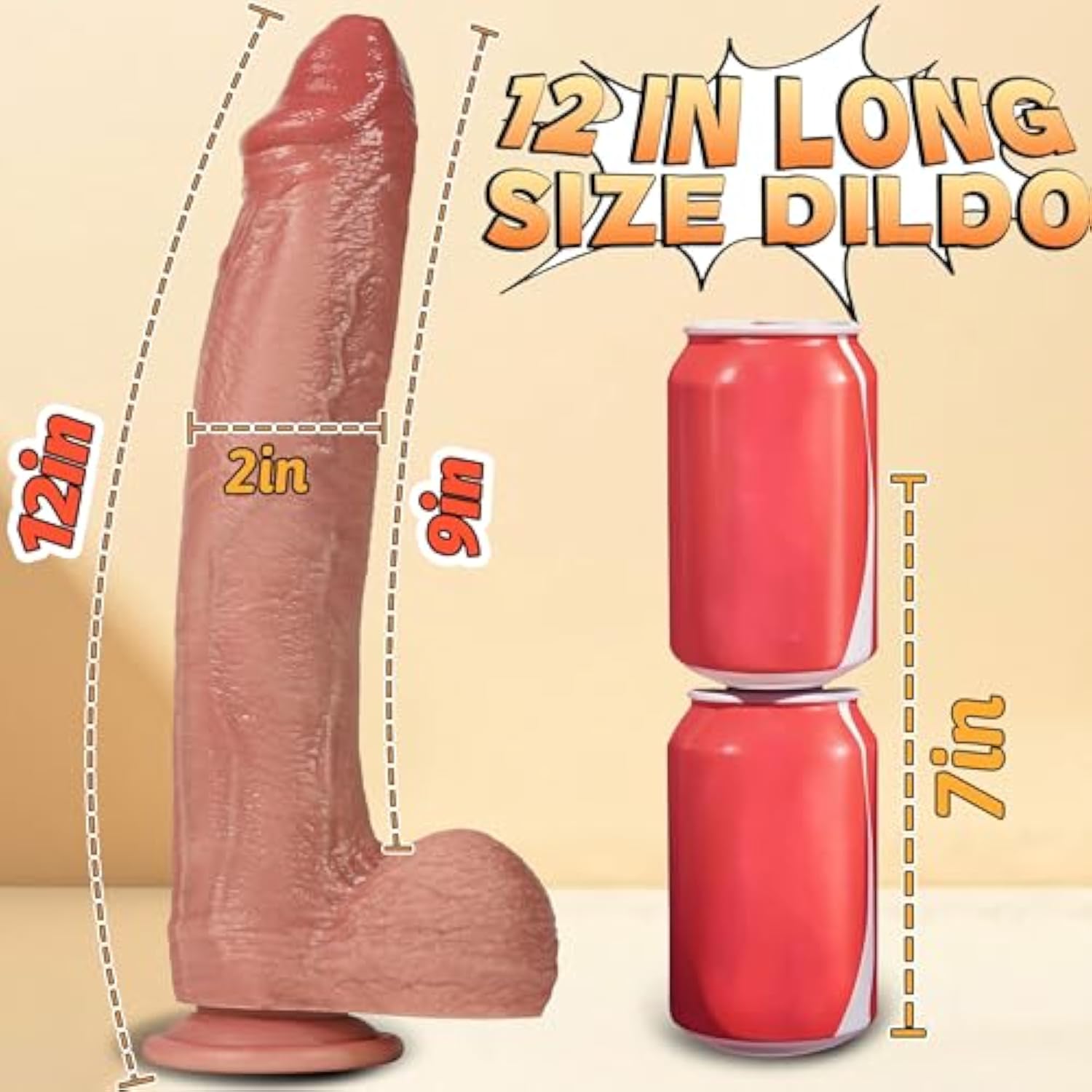 Impressively Long Big Dildos For Normal Player: Upgrade Your Pleasure With This 12Inch Large Realistic Dildo! Featuring A 9Inch Insertable Length And A Satisfying Circumference 6.3 Inch. Different From Standard Size Such As 7 Or 8 Inch Realistic Dildo For Beginners, This Huge Dildo With Larger Size Can Provide More Intense And Comprehensive Stimulation For Women Or Men, The Large Dildo Is Definitely Sex Toy For You. | | Lifelike Skin Texture Venous Uncut Dildo: Experience Lifelike Pleasure With This Girthy Dildo! Featuring A Realistic Glans,Soft Real Skin, Shaft With Cyan Veins, And Textured Balls. Every Detail Has Been Carefully Designed To Give You A More Realistic Dildo. | | Dual-Density Soft Silicone Dildo: The Anal Play Dildo Is Entirely Made Of High-Quality Liquid Silicone, Soft To The Touch, Flexible As You Want, Liquid Silicone Dildos Are Known For Their Exceptional Quality And Lifelike Feel. Made From Medical-Grade Silicone, They Offer A Body-Safe And Durable Option That Closely Mimics The Texture And Flexibility.This Sex Toys Making It Ideal For Beginners And Experienced Users Alike. | | Powerful Suction Cup Dildo Harness Compatible: Enjoy Hands-Free Pleasure With Our Big Dildo. The Robust Suction Cup Easily Sticks To Surfaces Like Glass And Floors, Providing A Secure And Stable Experience. This Dildo Is Even Compatible With Strap-On Harnesses, Suitable For Men, Gay, Lesbian, Couples And More. | | Discreet Packaging Easy To Clean: This Huge Anal Dildo Arrives In A Discreet, Solid-Colored Box, Ensuring Your Privacy. Our Big Huge Dildo Is Your Choice. Making It An Ideal Choice For Both Female And Male Sex Toys Enthusiasts. | |