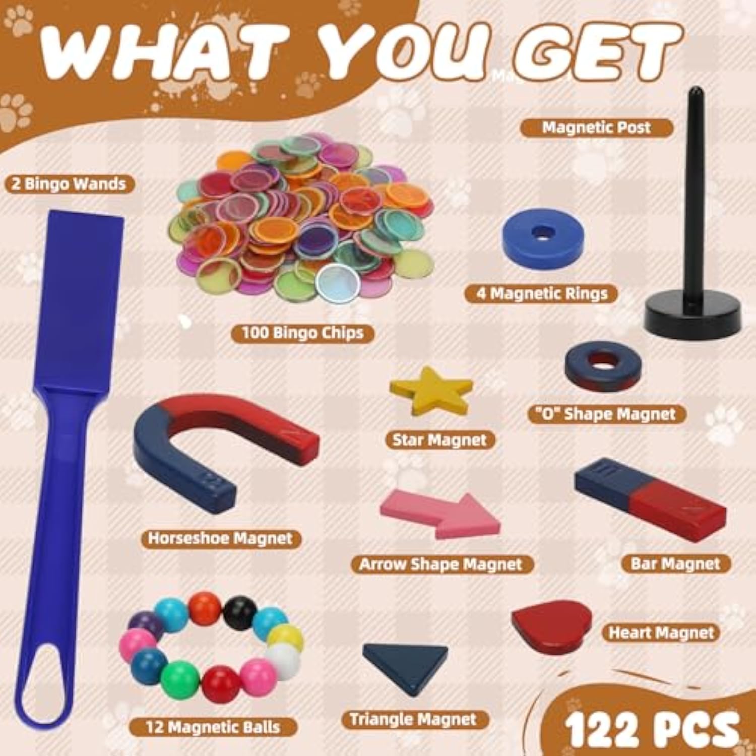 122 Pcs Magnetic Science Kit For Kids - Magnetic Balls, Bingo Wands With Chips, Diy Magnet Toys For Kindergartners, Back To School Supplies, Educational Learning Activities For Classroom