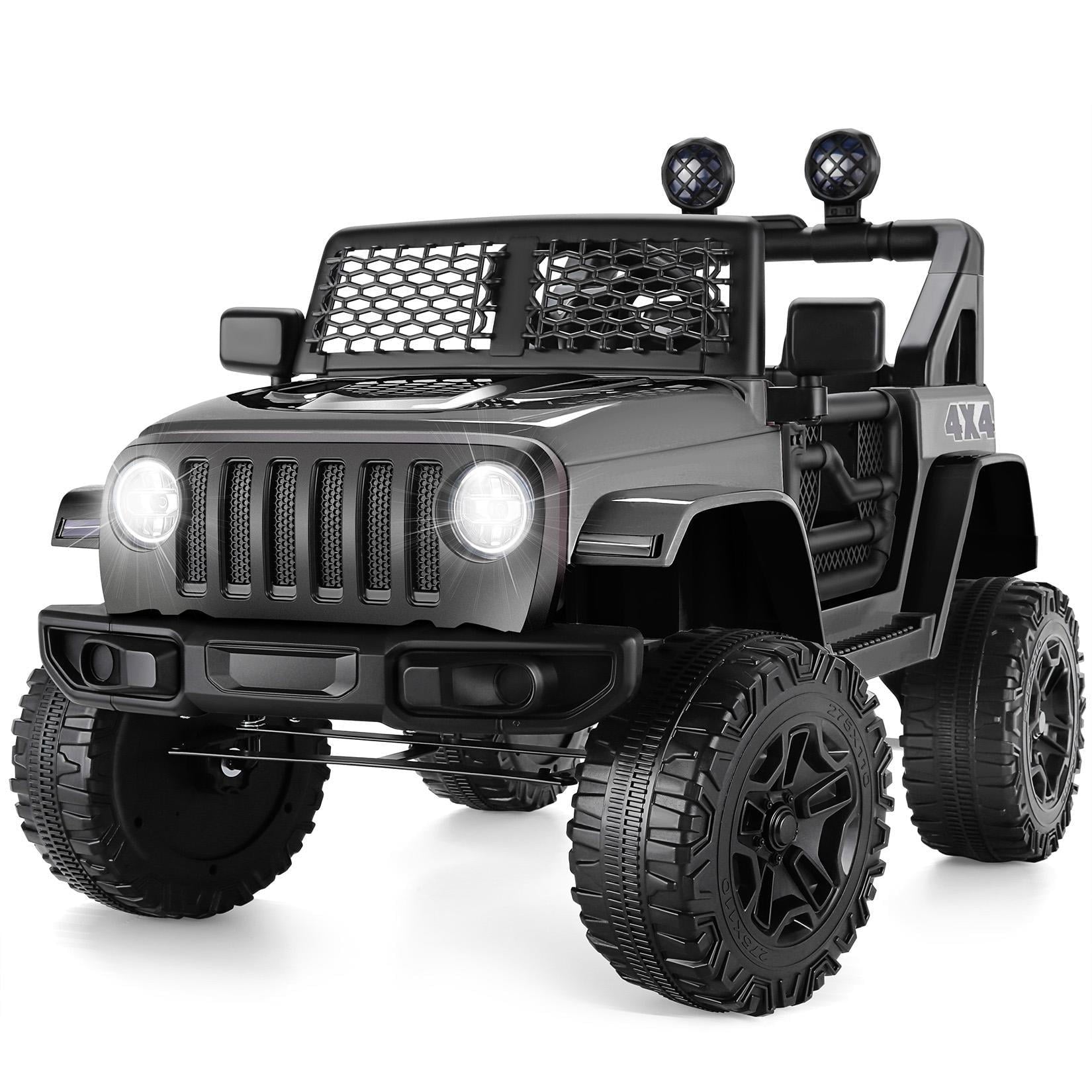 12V Kids Powered Ride On Truck Car With Parent Remote Control, Bluetooth Music, Spring Suspension, Led Lights - Black
