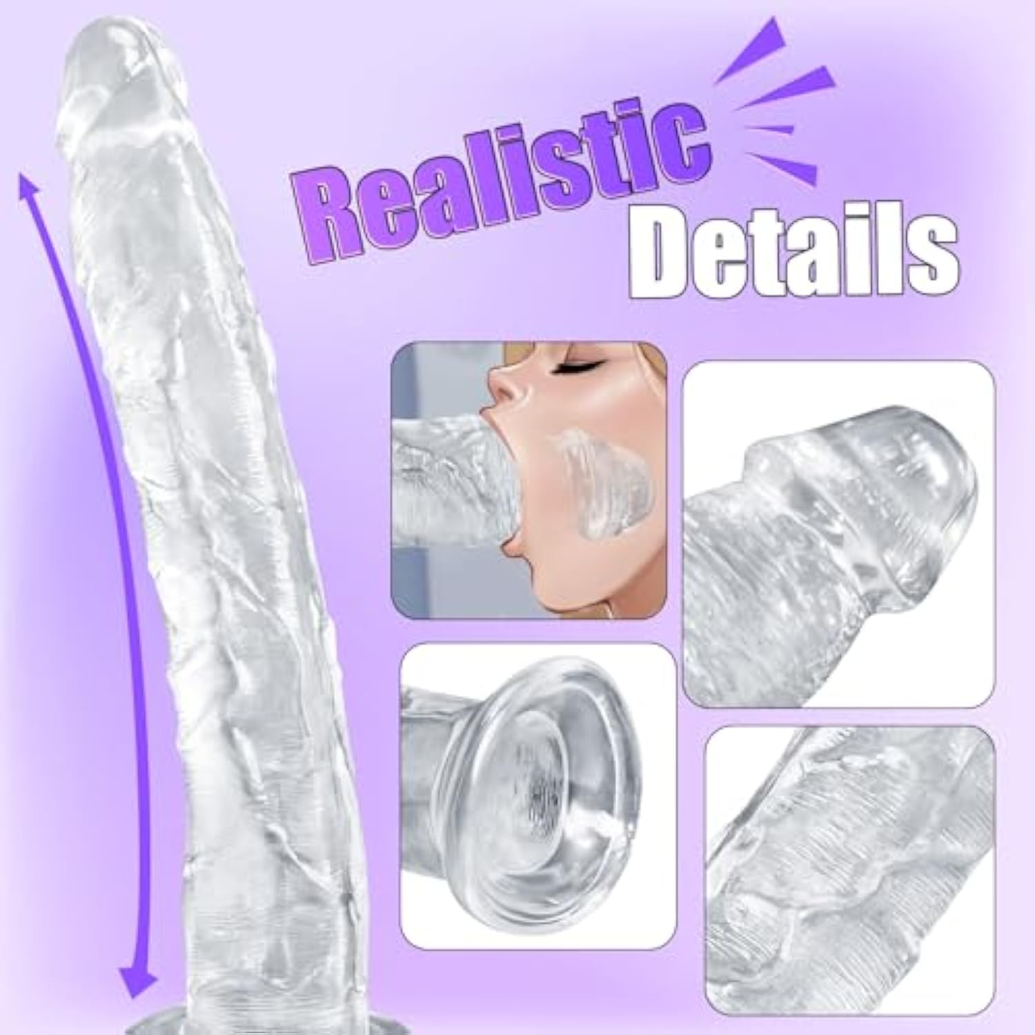13 Inch Huge Realistic Dildo Clear Anal Adult Toy, Big Long Dildo With Small Glans For G Spot Anal Stimulation, Body-Safe Material Jelly Thin Dildo With Suction Cup, Anal Sex Toys For Men Women Couple