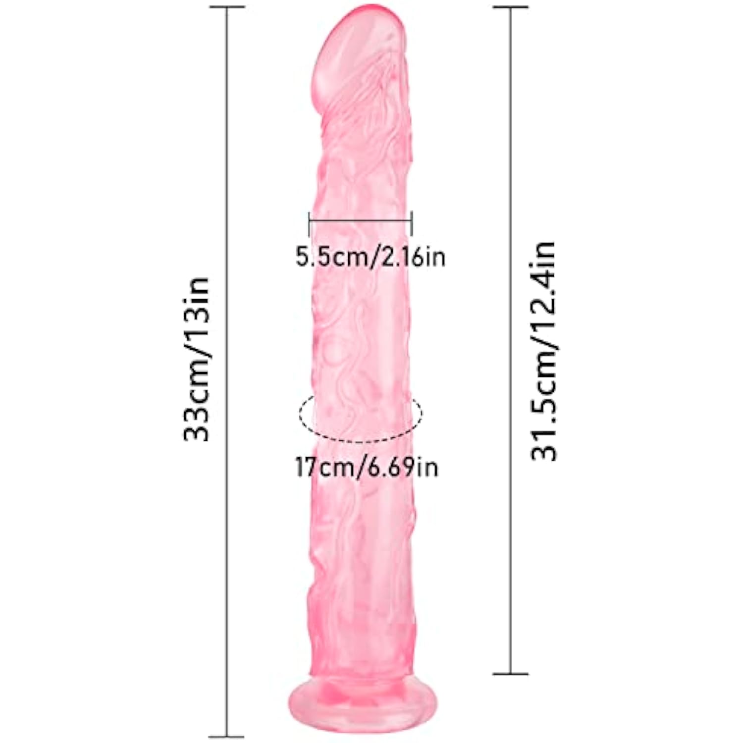 13 Inch Jelly Crystal Dildo, Realistic Huge Flexible Dildos With Powerful Suction Cup Base Large Soft Thick Anal Dildo Adult Sex Toy For Women - Pink