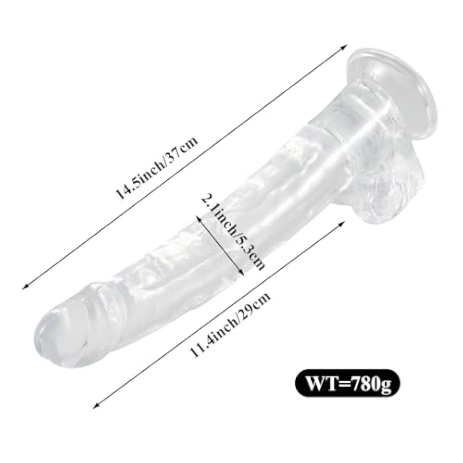 | ?Huge Dildo For Advanced?The Diameter Of This Crystal Dildo Is 2.1 Inch And Total Length Is 14.5 Inch, This Huge Dildo Is Perfect For Advanced Sex Toy Player. | | ?Realistic Dildo?Realistic Dildo With Realistic Glans, Visible Veins And Wrinkled Testicles, Surface Like Skin, Realistic Feeling And Appearance. Not Only Sex Toy For Women, But Also For Gay, Lesbian, Couples. | | ?Huge Thick Anal Plug?The 15.7Inch Massive Black Anal Plug With A Weight Of 1.8 Kg, An Insertable Length Of 13.4 Inch And A Maximum Diameter Of 3.3 Inch. The Giant Butt Plug Is Perfect For Anal Training And Deep Penertration. Please Note That The Size Is Only For Advanced Players, Not For Beginners. | | ?Strong Suction Cup?Equipped With An Extremely Strong Suction Cup, The Huge Buttplugs Anal Trainer Toy Offers A Hands-Free Sexual Experience. The Massive Butt Plug Can Be Firmly Attached To Shower Walls, Bathtubs, Toilet Seats And More Places You Desire. | | ?Waterproof Easy To Clean?The Huge Buttplugs Massive Dildo Cleans Easily By Thoroughly Washing Over With Warm Soapy Water Or Use Toy Cleaner. After Rinse Off Clean, Pat It Dry With A Clean Towel, Then The Anal Stretcher Dildo Will Be Ready To Store Away Until Next Use. | |