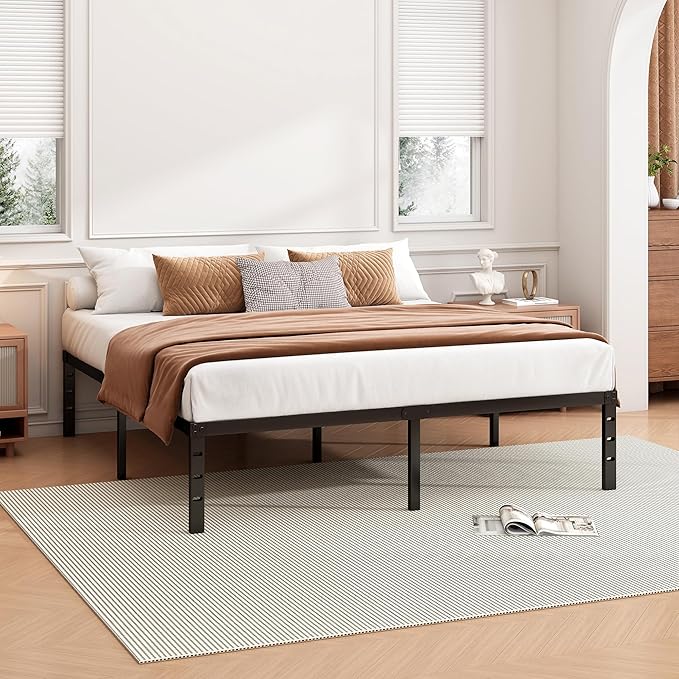14 Inch Queen Bed Frame - Sturdy Metal Platform Queen Size, No Box Spring Needed, Heavy Duty, Easy Assembly, Strong Bearing Capacity, Under Bed Storage, Black