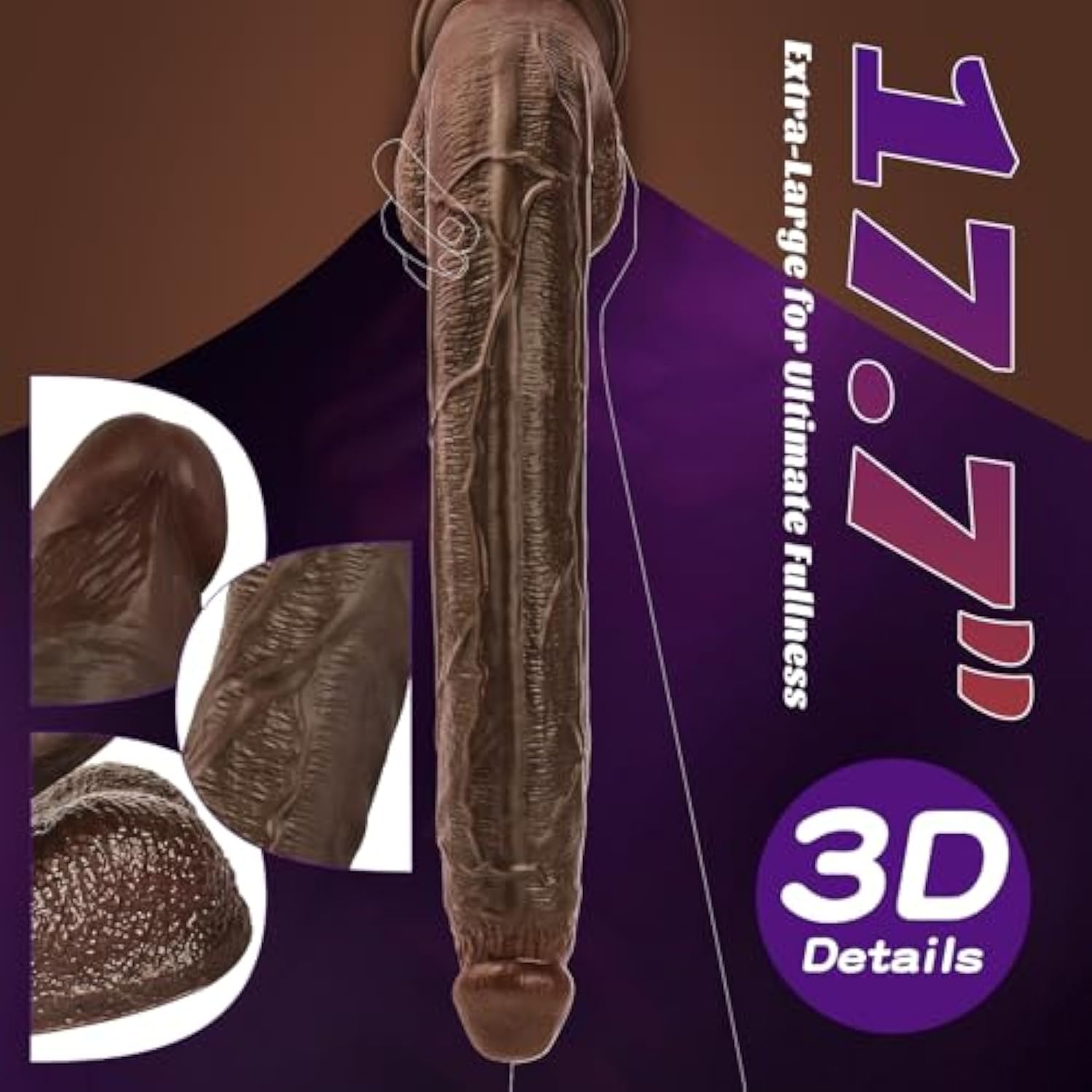 - Experience Ultimate Fullness Intense Pleasure – This 17.7-Inch Extra-Large Black Dildo Offers A 14.2-Inch Insertable Length And 2.36-Inch Girth, Designed For Deep Penetration And Total Body Stimulation. The Realistic Glans, Textured Veins, And 3D Balls