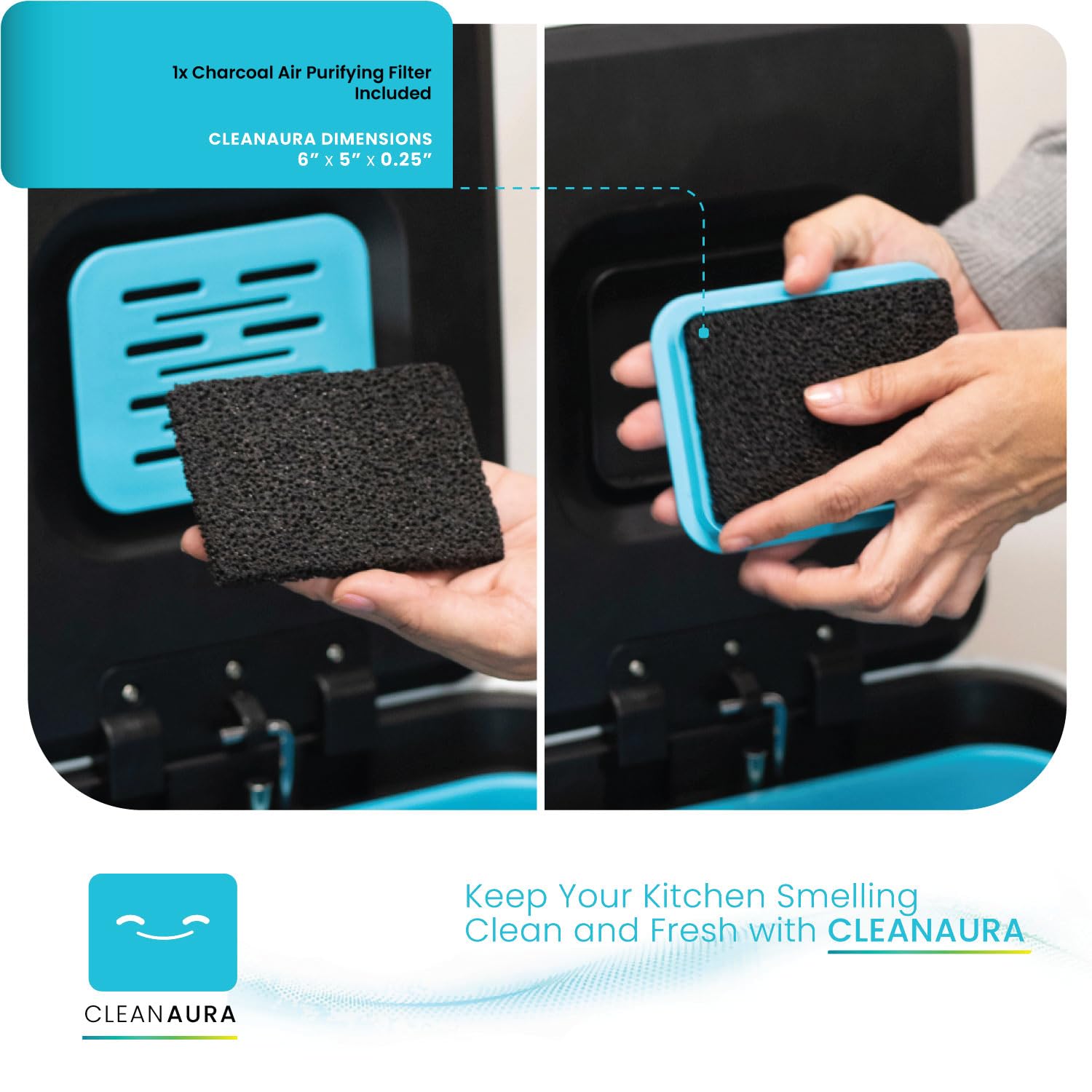 - Take Control of Your Kitchen – No more musty trash cans that stench up your kitchen. CleanAura is designed to help prevent the uninviting odors from evading the inside of your trash can with the use of an absorber filter placed inside the pod located under the lid.