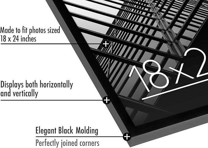 - Ideal Size and Durable Material: This 18x24 frame features a slim molding, crafted from durable and high quality PVC material in black, designed to beautifully display your cherished memories and favorite photos.