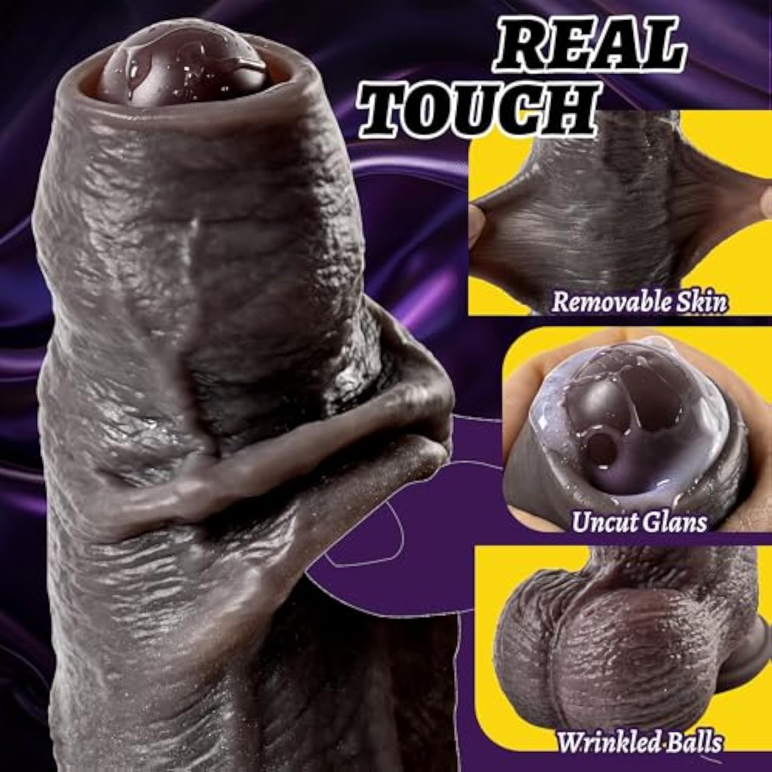 | Big Black Dildo With Movable Uncut Foreskin : This Bbc Dildo Comes With Ultra-Realistic Uncut Movable Foreskin Design, The Realism Of Huge Dildo Is Completely Imitated From The Male Penis, With The Lifelike Head, Vivid Cyan Veins, And Textured Balls. The Thick Dildo Mimicks The Natural Appearance Of An Uncircumcised Penis For A Lifelike Visual Experience. Its Unique Design Offers Varied Sensations And Stimulation, Providing A More Realistic Option For Those Who Prefer A Natural, Unaltered Feel. | | Extra-Large Dildo With Small Glans For Ultimate Satisfaction: With An Overall Length Of 9.6 Inches, An Insertable Length Of 7.5 Inches, The 1.8In Glans And A Diameter Of 2.4In Fat Dildo, This G Spot Stimulator Is Perfectly Sized And Is A Favorite Of Those Who Love Big Dildos For G-Spot Stimulation And Anal Play. The Gay Sex Toy Offers A Weighty, Realistic Feel. The Lifelike, Oversized Girth Intensifies Sensation With Every Thrust, Elevating Pleasure To New Heights. | | Dual Layer Silicone Materiall With Realistic Movable Foreskin: This Moving Dildo Is Made Of Premium Dual-Density Silicone Offers Both Realistic And Safe Options.The Outer Layer Of The Large Dildo Features Realistic Skin Texture And Movable Lifelike Skins. The Foreskin Is Designed For The Outermost Layer, Being Soft And Movable. It Mimics Real Skin By Moving And Sliding Back And Forth Like Genuine Foreskin. | | Powerful Suction Cup And Strap-On Dildo: This Monster Dildo Features A Strong Suction Cup That Firmly Attaches To Any Smooth Surface, The G-Spot Dildo Gives Many Options For Standing, Kneeling, Squatting All Produce Fantastic, Deeply Fulfilling Pleasure With The Great Length And Width Of This Awesome Tool. The Realistic Penis Can Be Sucked On The Shower Wall, Bathtub, Etc, Solo Play Is Definitely Encouraged With This Adult Sex Toy Massive Dildo. | | Discreet Packaging Easy To Clean: It Is Highly Recommended To Apply A Water-Based Lubricant Before Using The Waterproof Dildo. After Use, You Can Rinse It Under Running Water, Utilize Mild Soap Or A Toy Cleaner Specifi