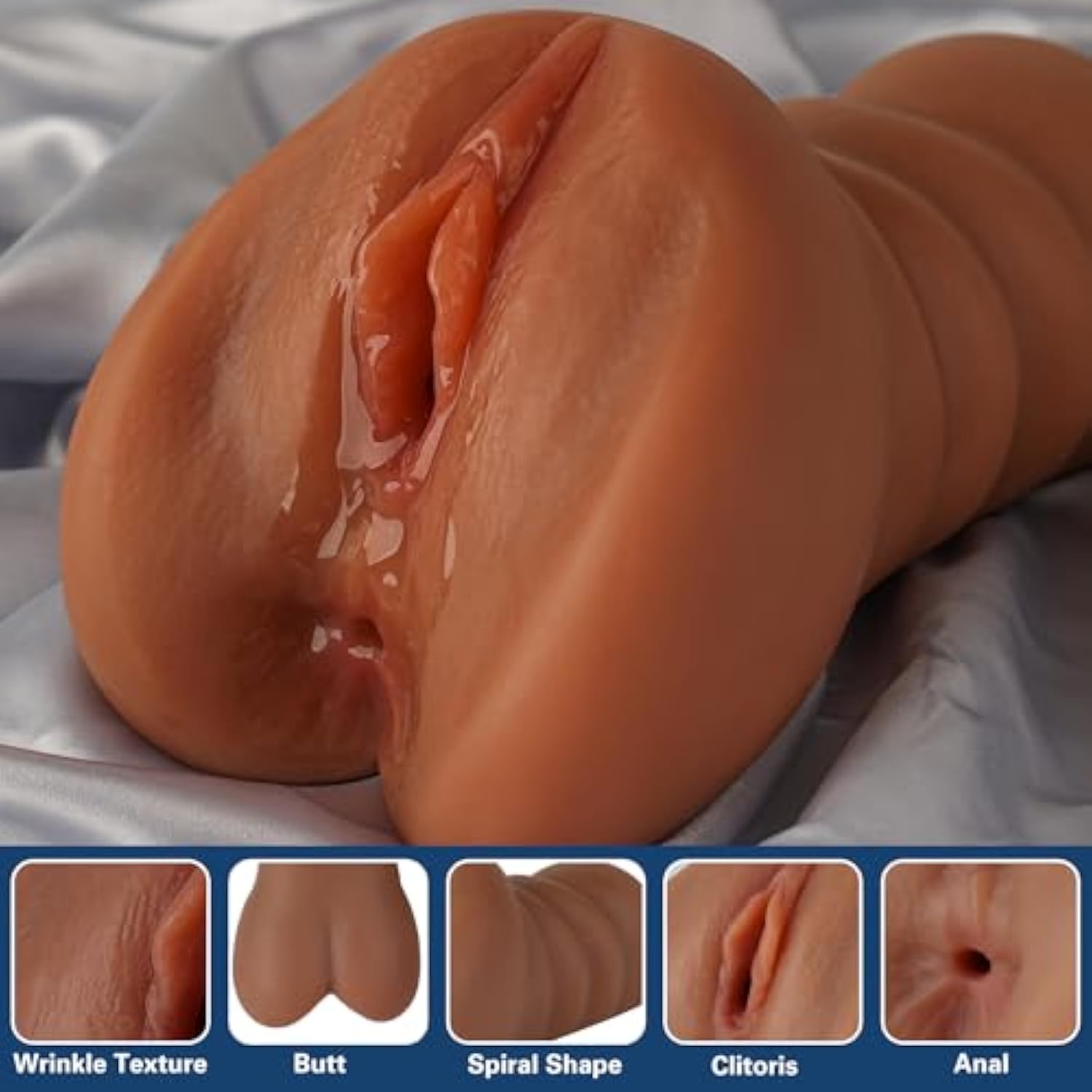 2 In 1 Male Masturbators, Adult Sex Toys With Realistic Textured Portable Pocket Pussy Stroker With 3D Vagina Clitoris For Adult Men Masturbation(Brown)