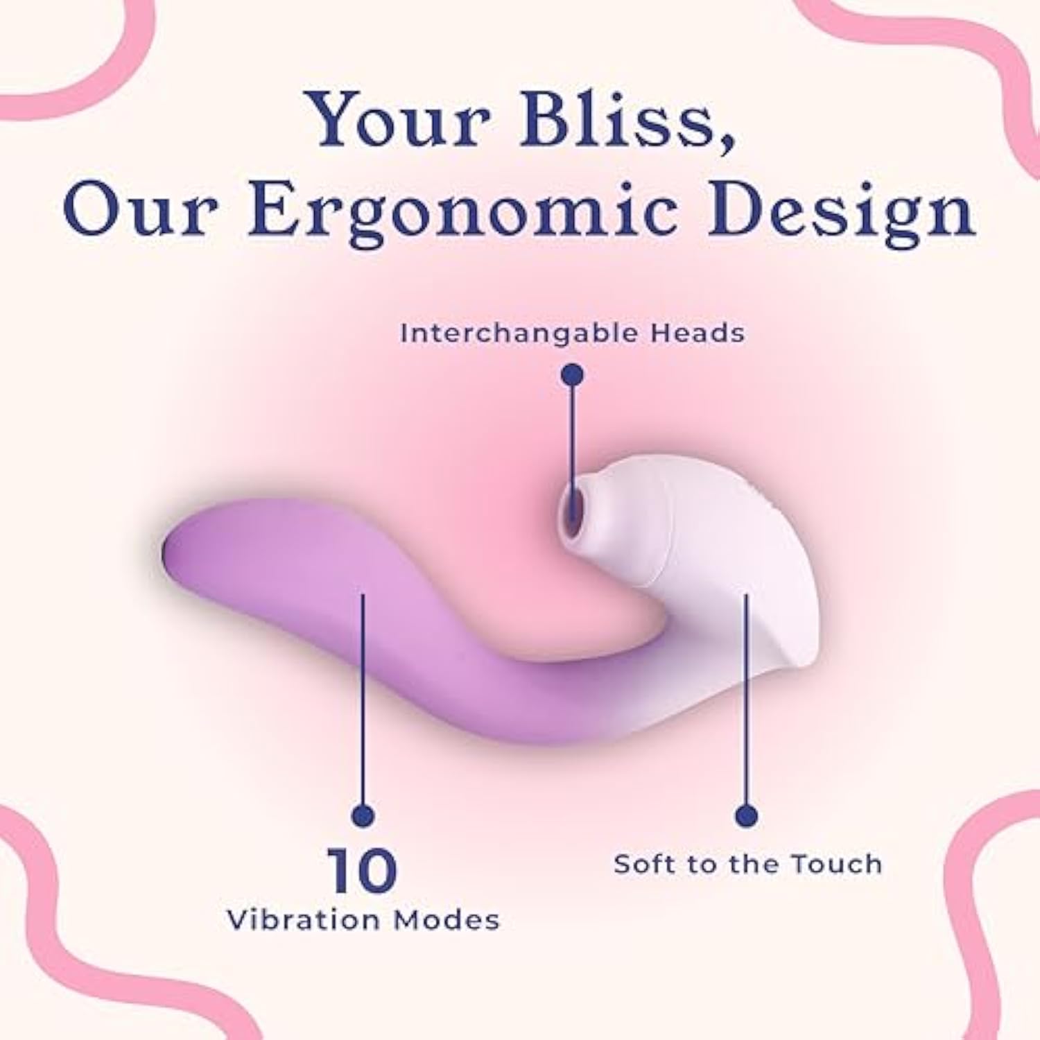 2 In 1 Personal Vibrator Massager For Women, Suction & Vibration With 3 Interchangeable Suction Heads, Cordless, 10 Modes, Female Tools For Relaxation & Muscle Relief, Rechargeable
