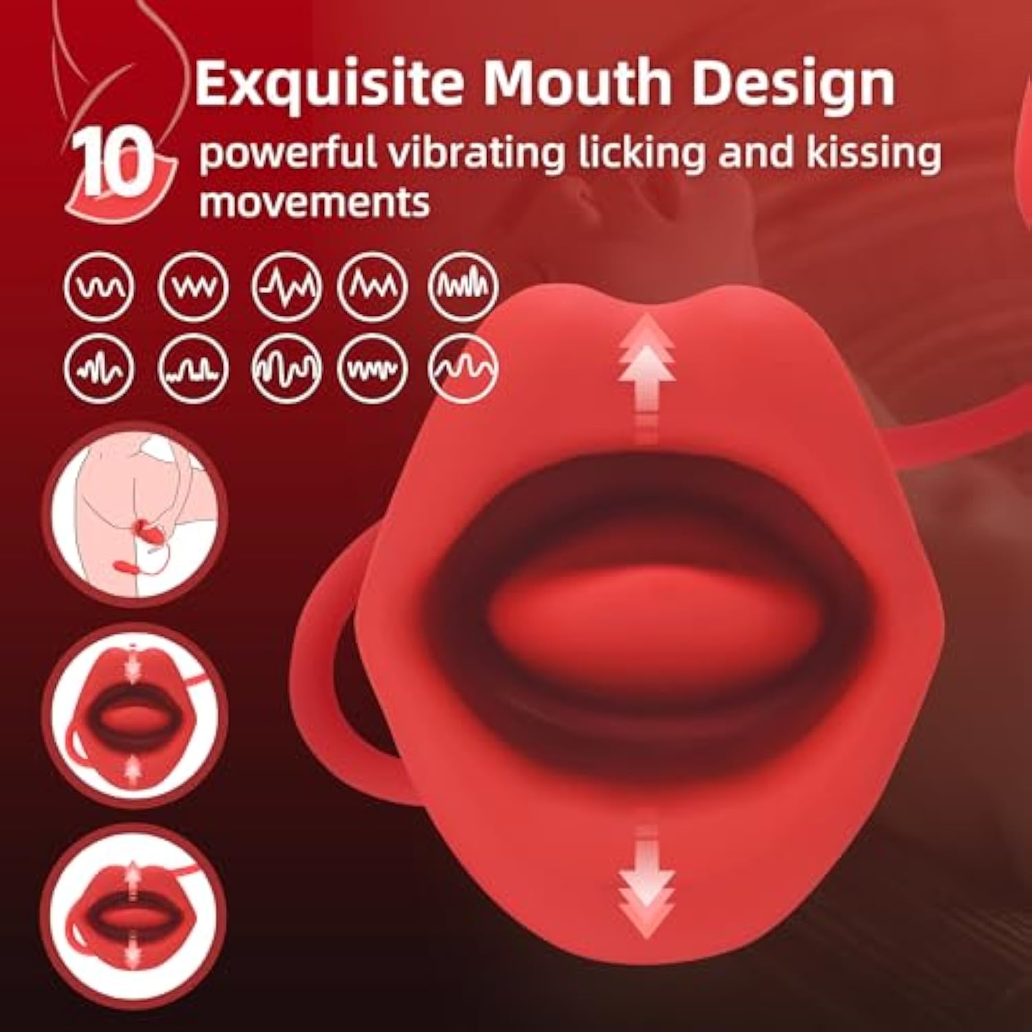 2 In 1 Women Sex Toy Sucking/Licking Vibrator And Thrusting Dildo For Woman Thick Lips Sucking Flexible Tongue Licking And Dildo Vibrator For Clitoris G-Spot Vagina Nipples Anus Gift For Women