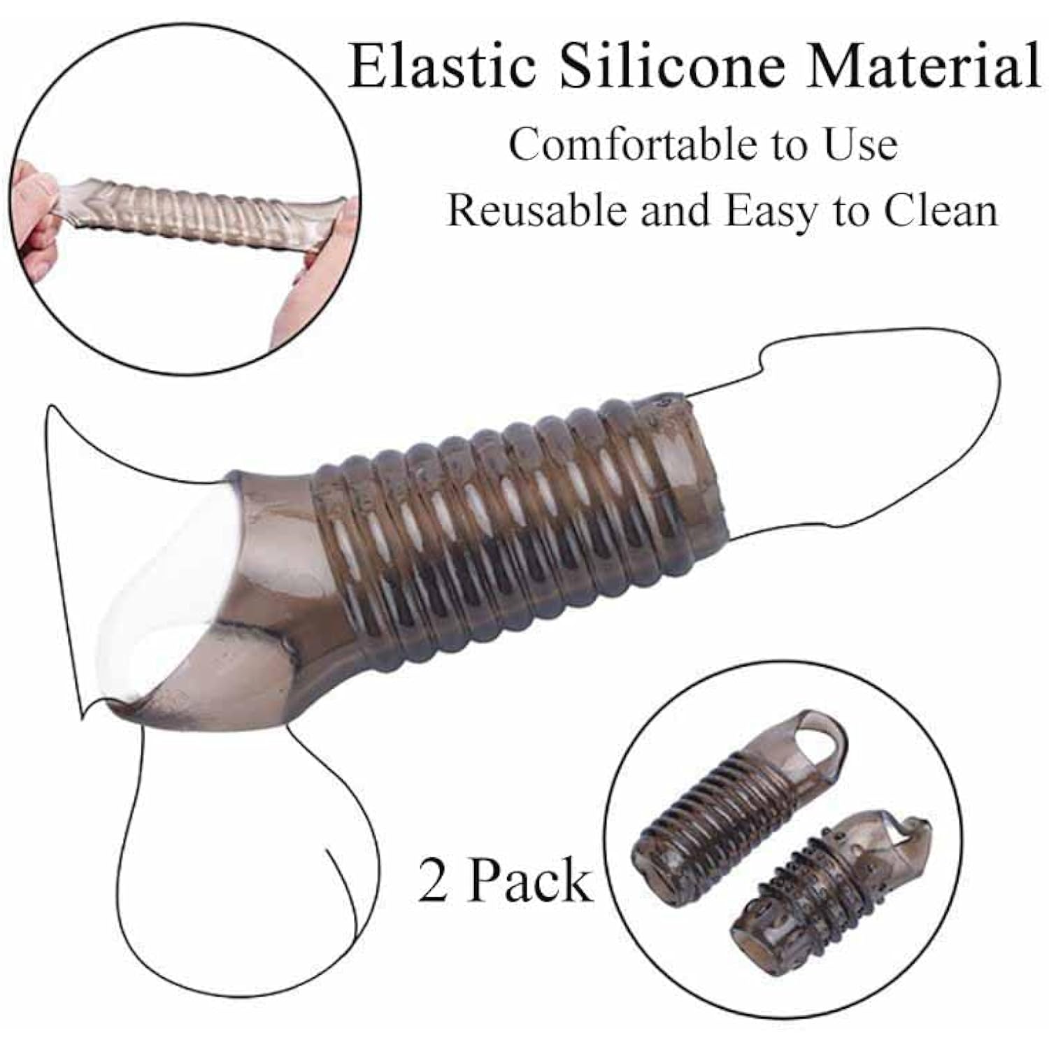 2 Pcs Reusable Cock Rings, Penis Enlargement Sleeves, Delay Ejaculation Stronger Erection Enhancement Sex Toys Soft Realistic Silicone Penis Ring For Adult Men Male(Black)