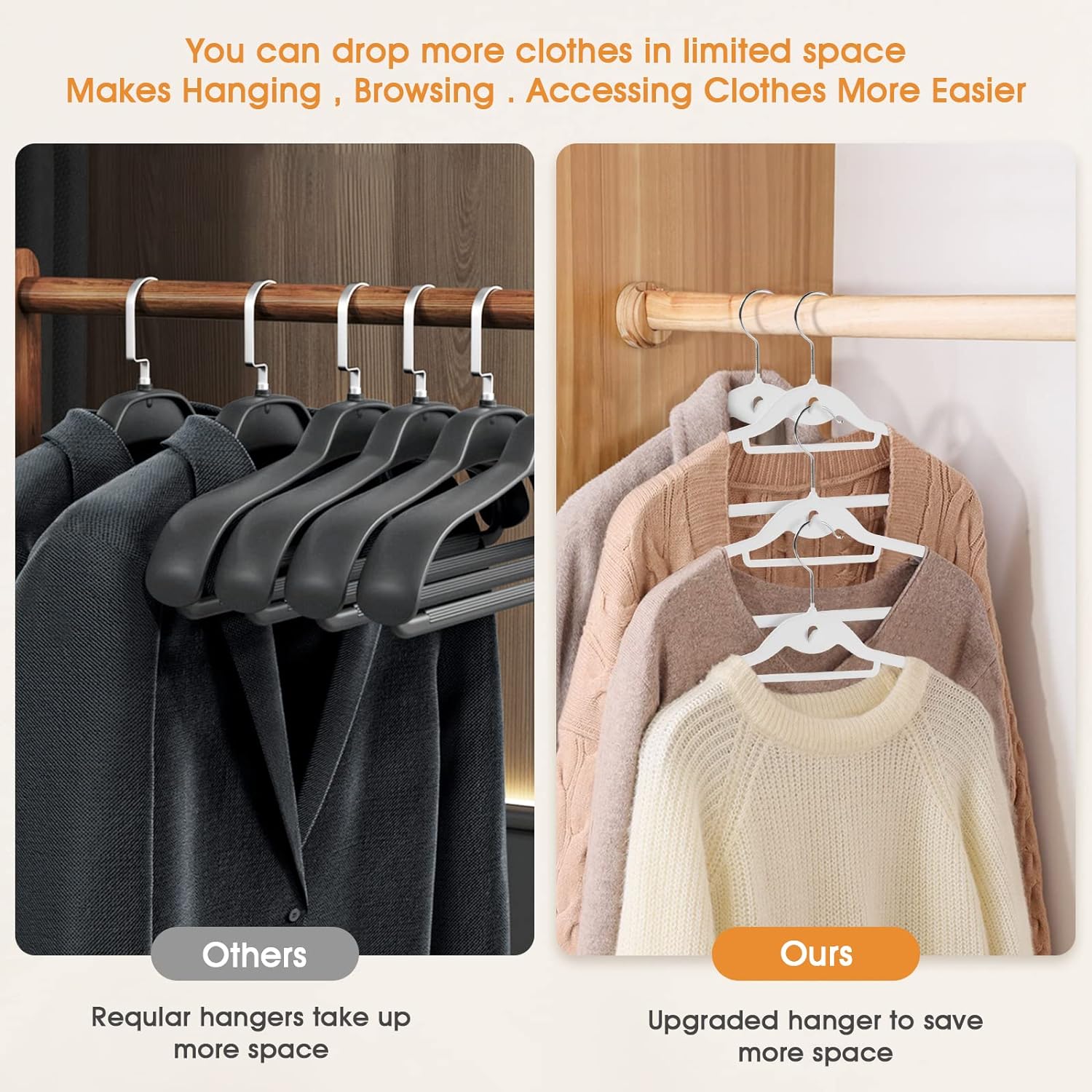- 1. EASILY MAXIMIZE YOUR CLOSET SPACE: Our sleek and slim double velvet hangers can give you up to 50% more space in your closet for a neat and organized look.