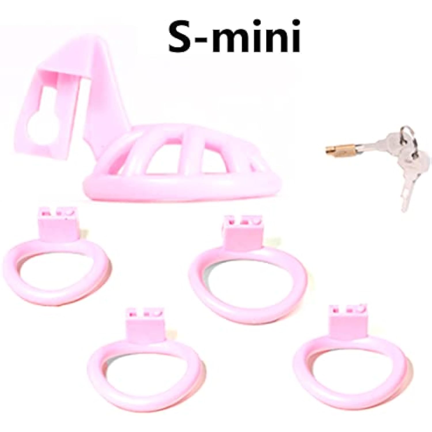 2022 Super Small Penis Ring Sissy Chastity Cage,Locked In Male Chastity Device With 4 Base Ring (S-Mini, Pink)