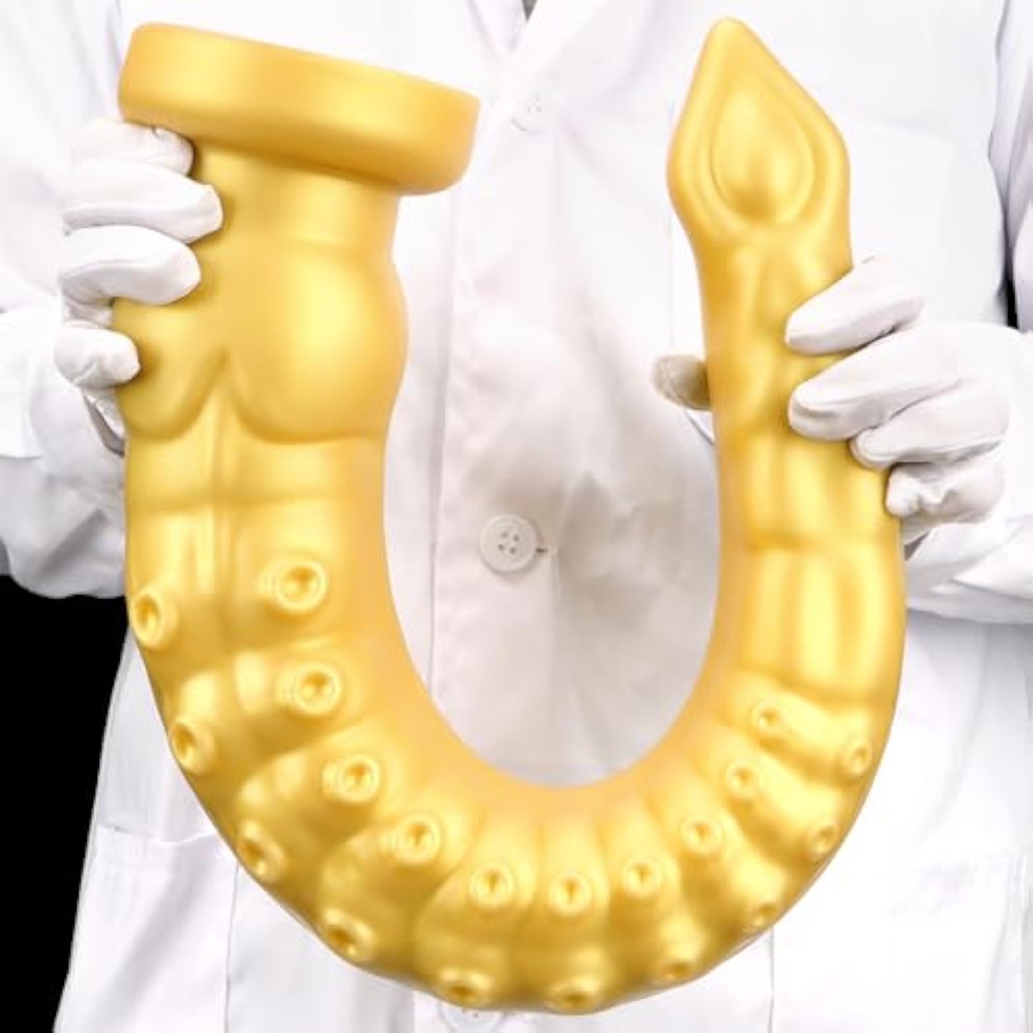 23In/59Cm Gold Silicone Super Long Xxl Octopus Tentacle Anal Plug Dildo, Realistic Huge Animal Dildos Butt Plug With Suction Cop Sex Toys Prostate Stimulator For Adult Male Female Couple (L)