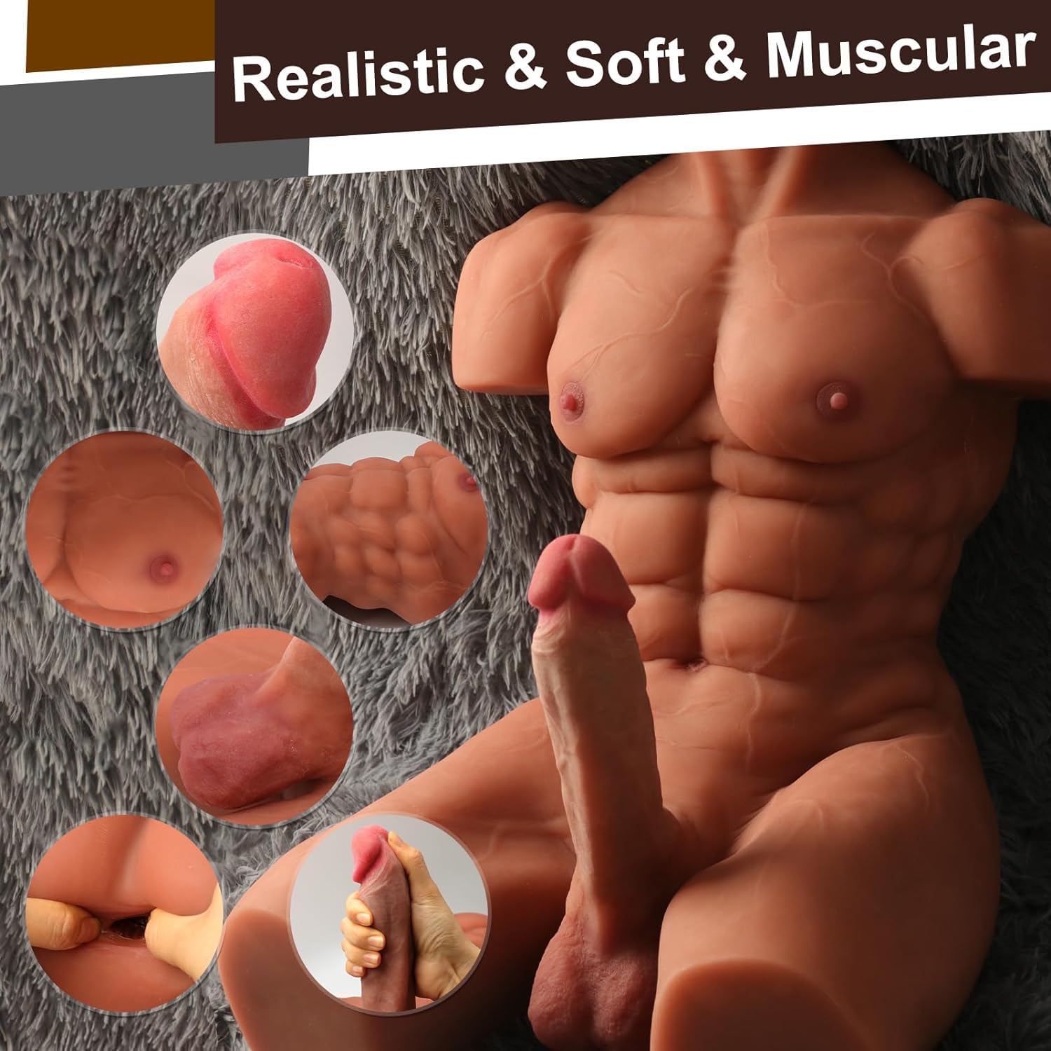 26LB Male Sex Doll with 8" Flexible Dildo, Muscular Torso & Tight Anal for Couples