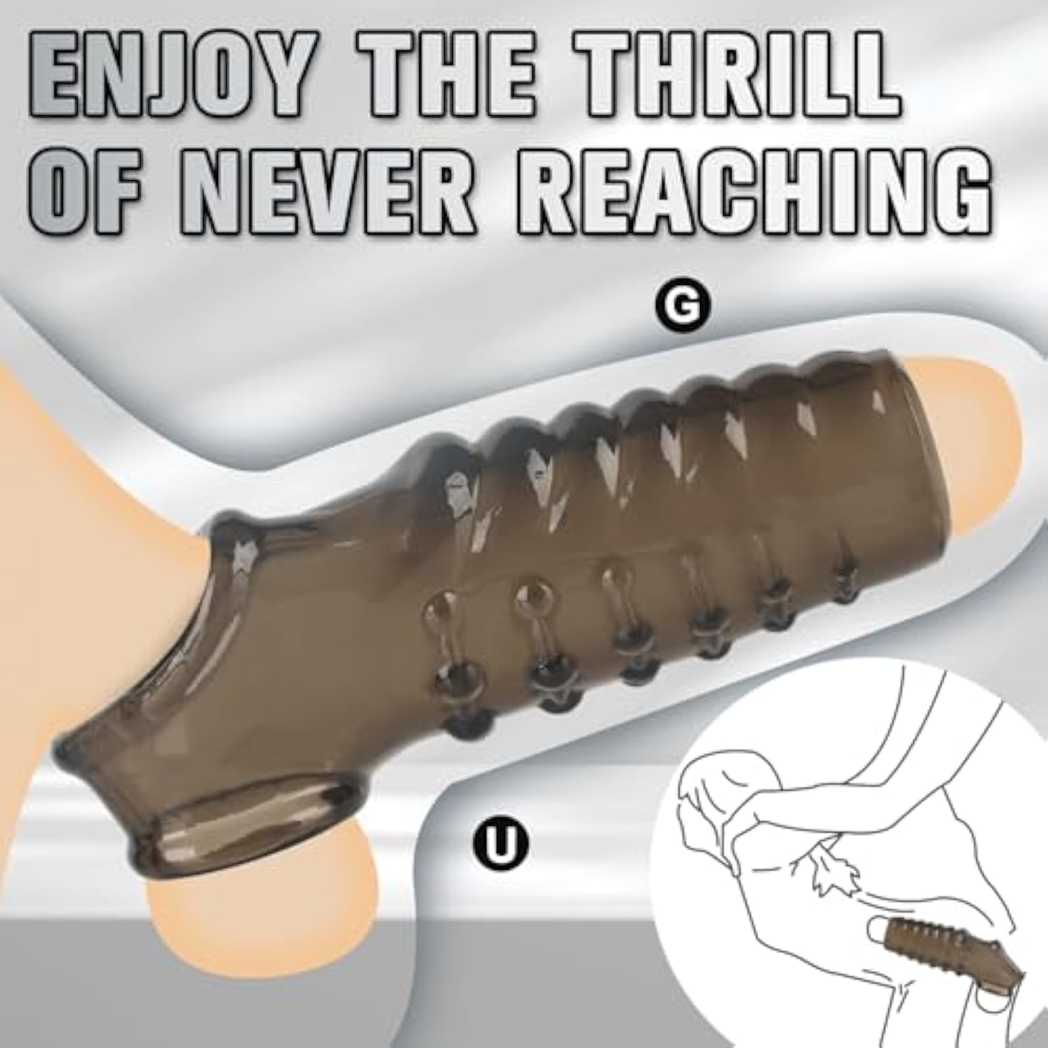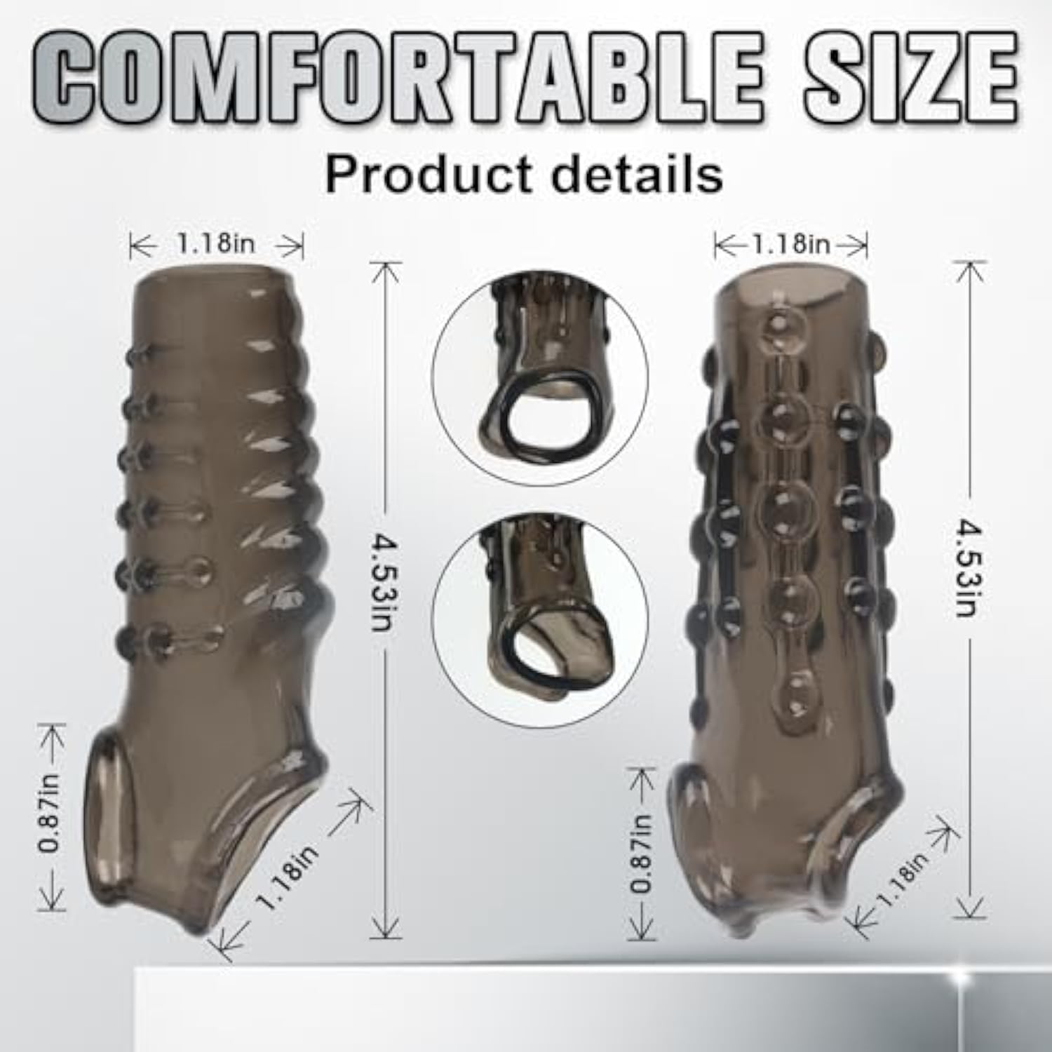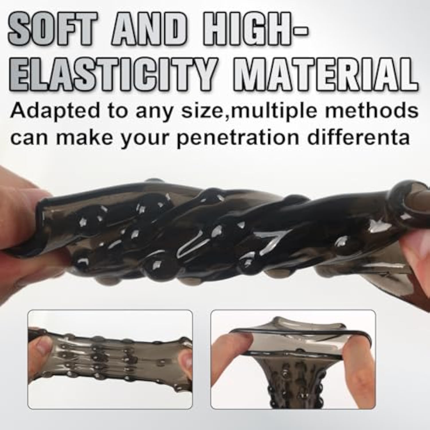 2PCS Premium Cock Enlarger Sex Toys, Reusable Ultra-Soft Penis Extender Sleeves with Penis Ring for Men and Couples, Pumps and Enlargers, Male Sex Toy for Boost Sexual Pleasure and Performance (Black)