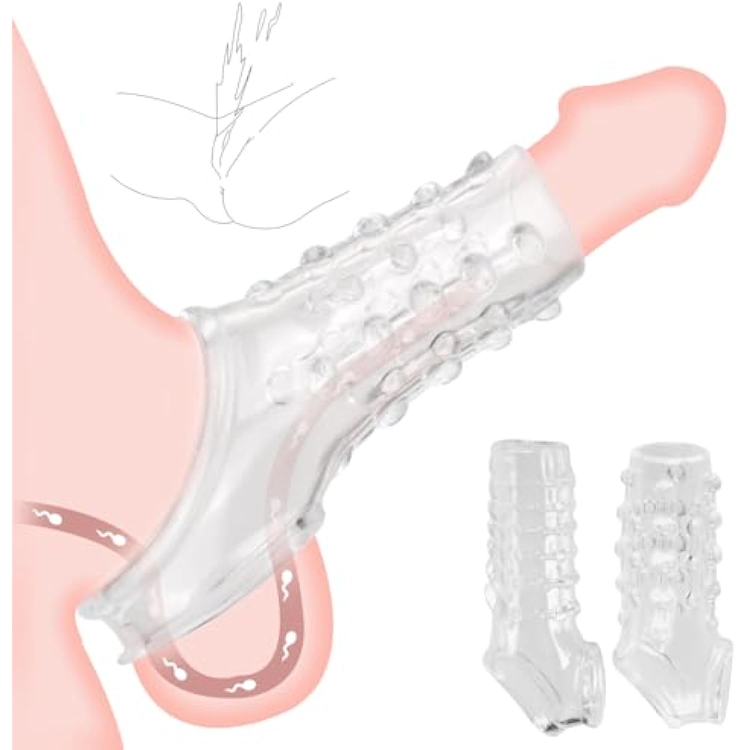 2PCS Premium Cock Enlarger Sex Toys, Reusable Ultra-Soft Penis Extender Sleeves with Penis Ring for Men and Couples, Pumps and Enlargers, Male Sex Toy for Boost Sexual Pleasure and Performance (White)