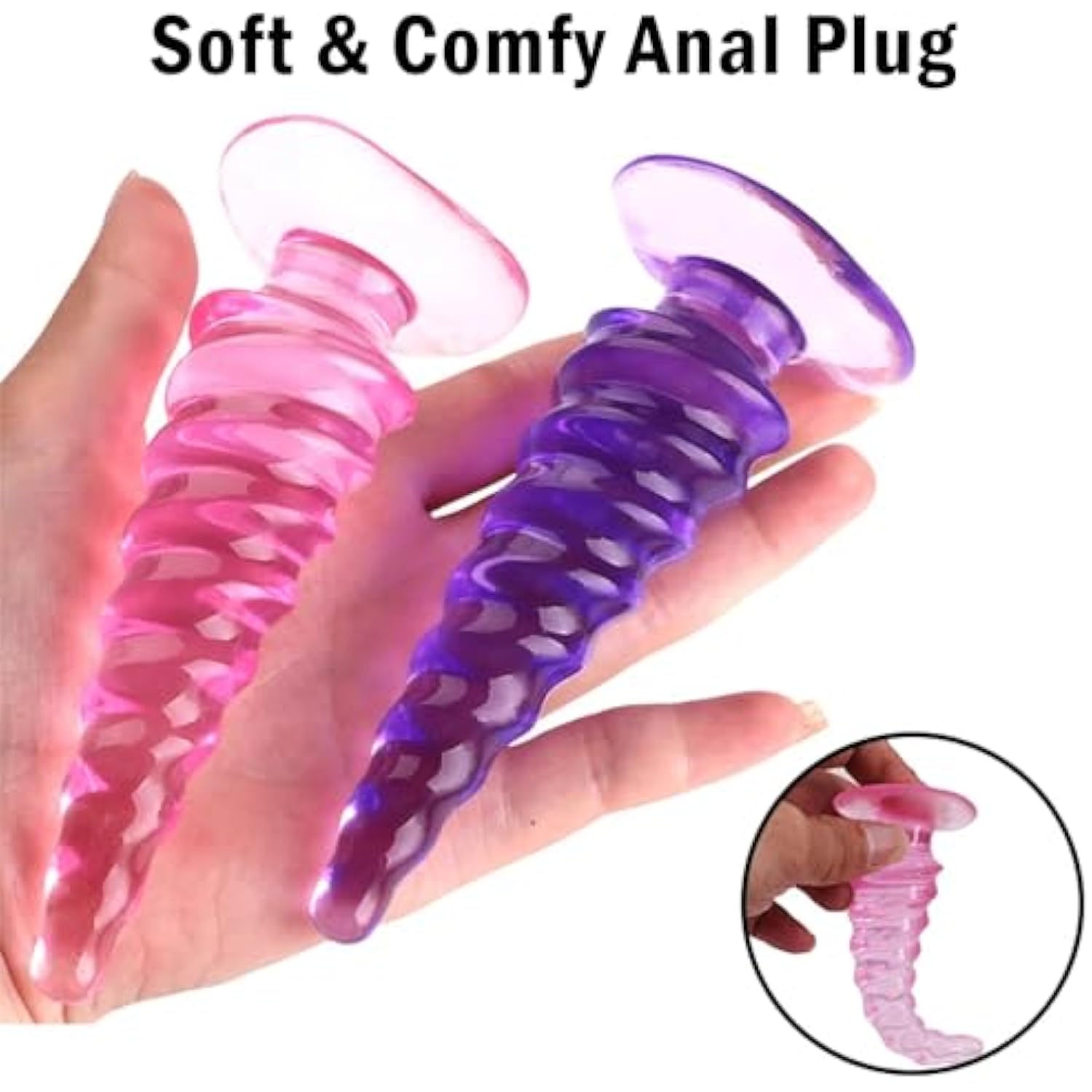 2Pcs Small Butt Plug, Anal Training Set For Anal Sex Beginners Dildo Soft Silicone Anal Sex Toys With Thread Textures Universal Anal Plug For Adult Men Women Gay Couples