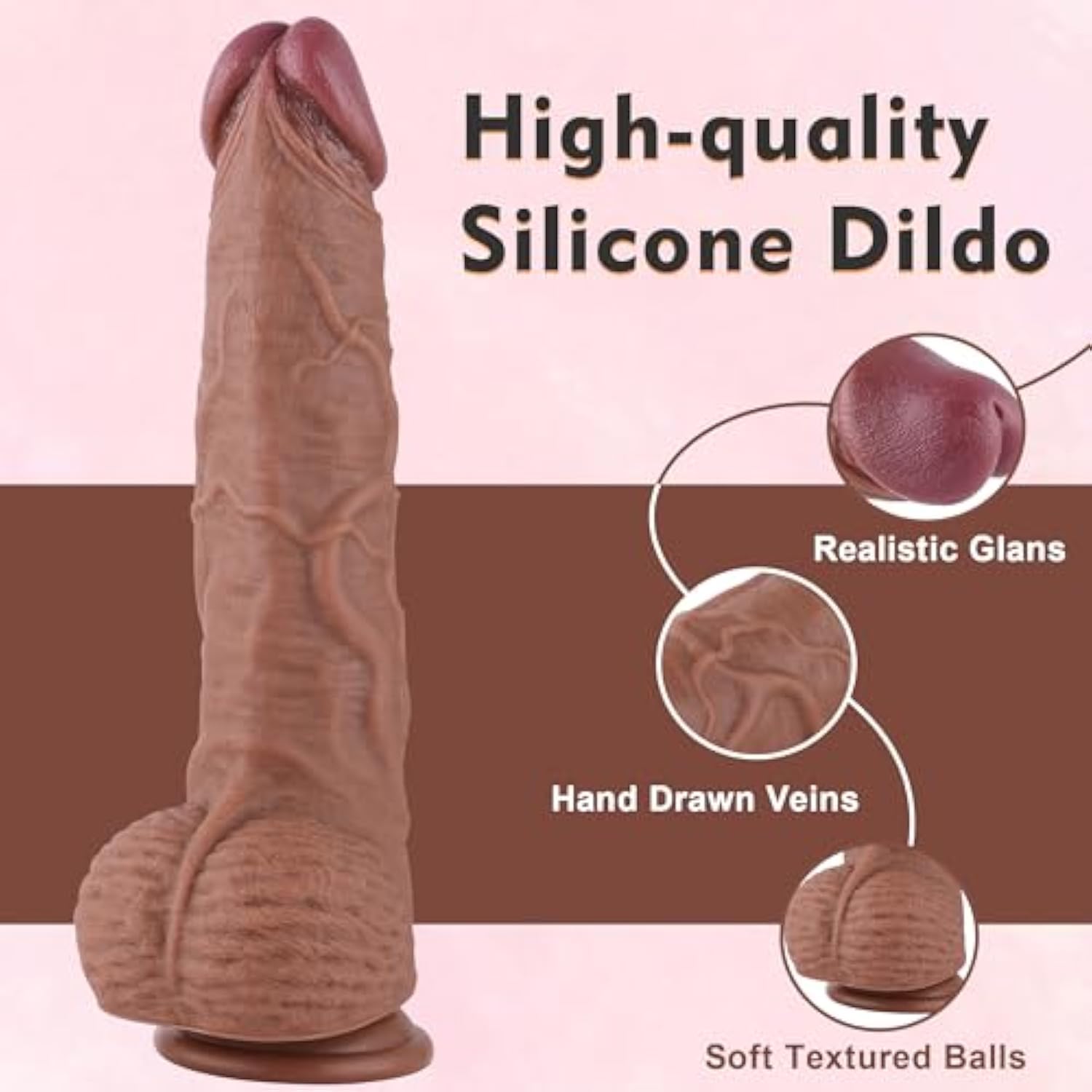 3' Huge Silicone Dildo With Wide Ball, Thick Brown 14' Long With App Controlled Vibrating, Wild Large Dildo With Dual Density & Strong Suction Cup Adult Sex Toy