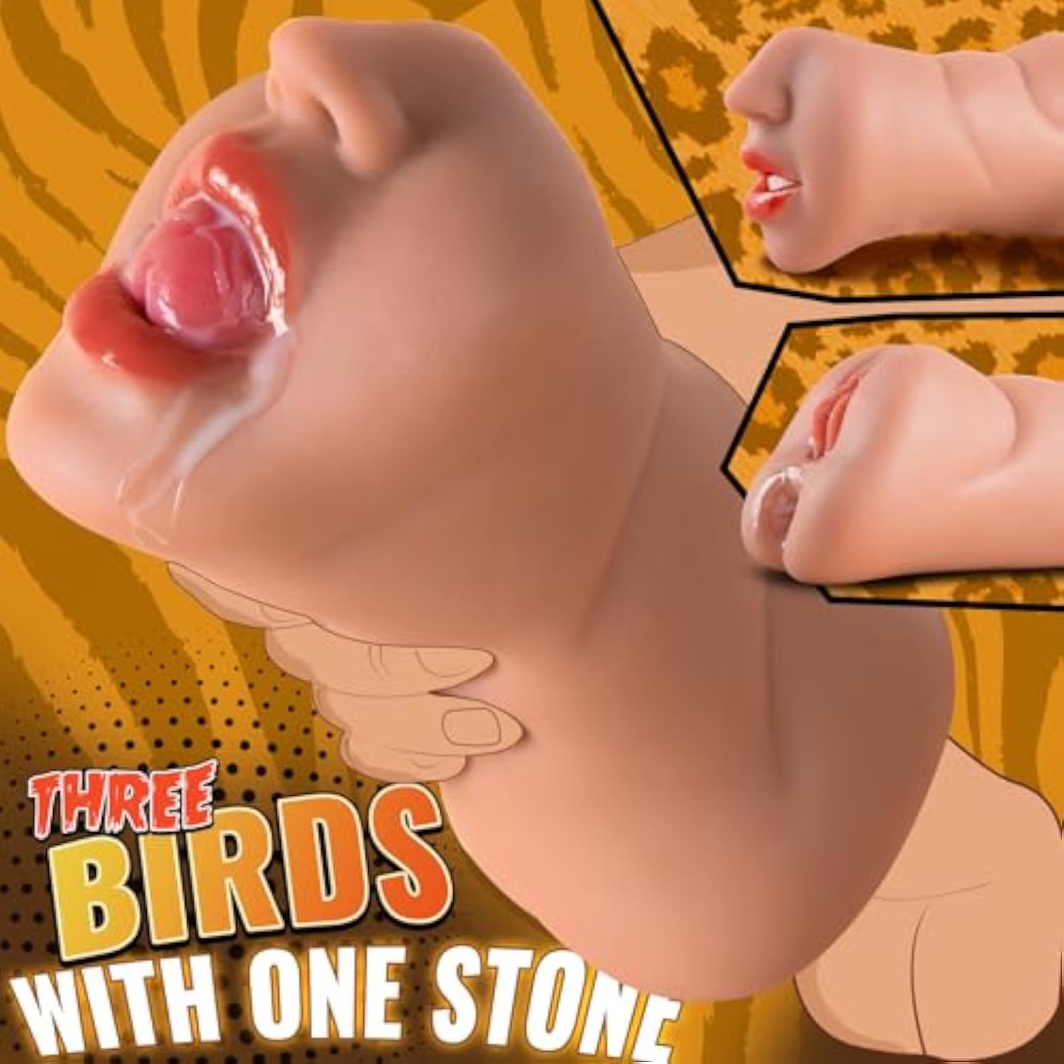 3 In 1 Pocket Pussy Lifelike Male Masturbator, Brown Thick Meaty Male Sex Toy Realistic Masturbator With 3D Textured Pussy And Tight Butt, Blowjob Stroker Dual Open Ended Adult Toys