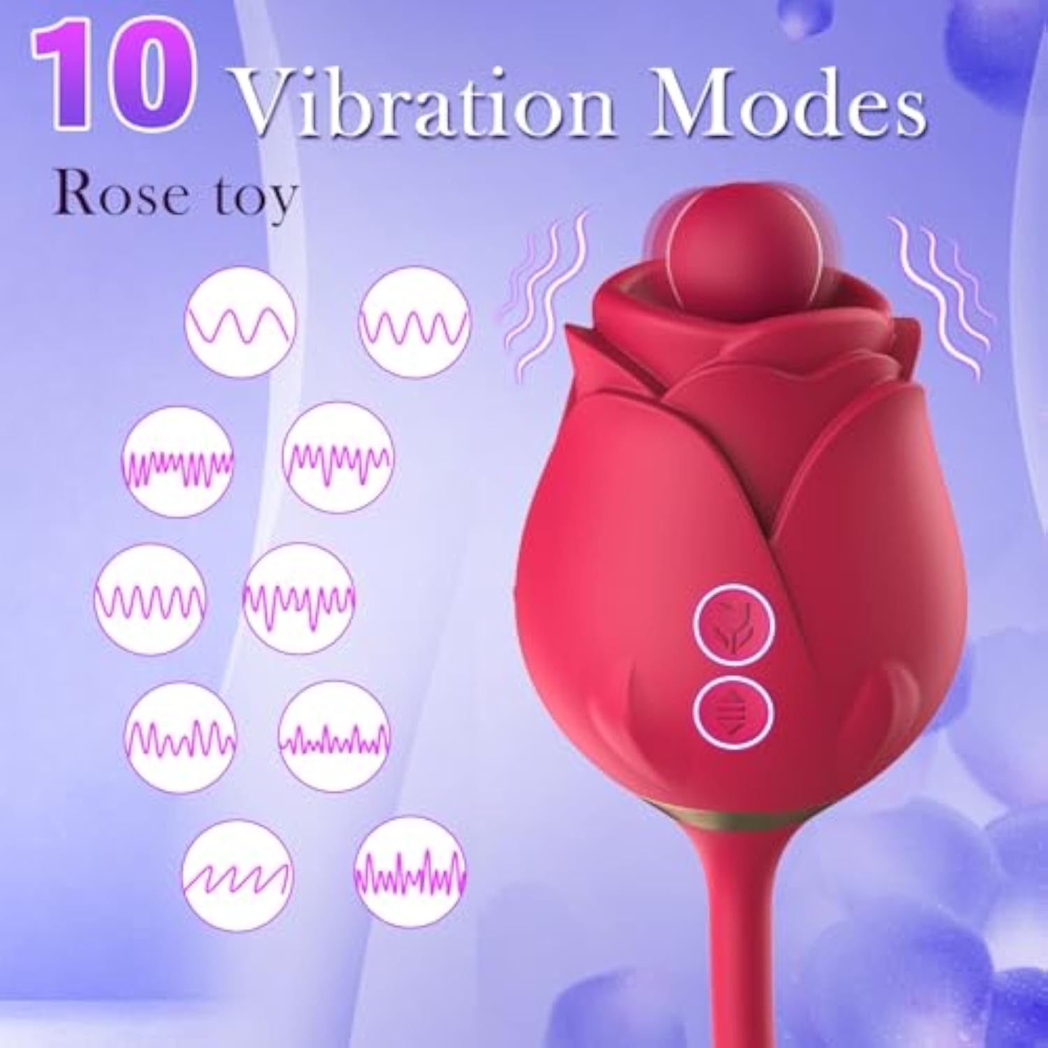 3 In 1 Rose Sex Toys Clitoral Licking Thrusting Dildo G Spot Vibrators For Women Clit Nipple Stimulator With 10 Licker Patterns & 10 Strong Thrusting Vibration Adult Toys For Women Couples