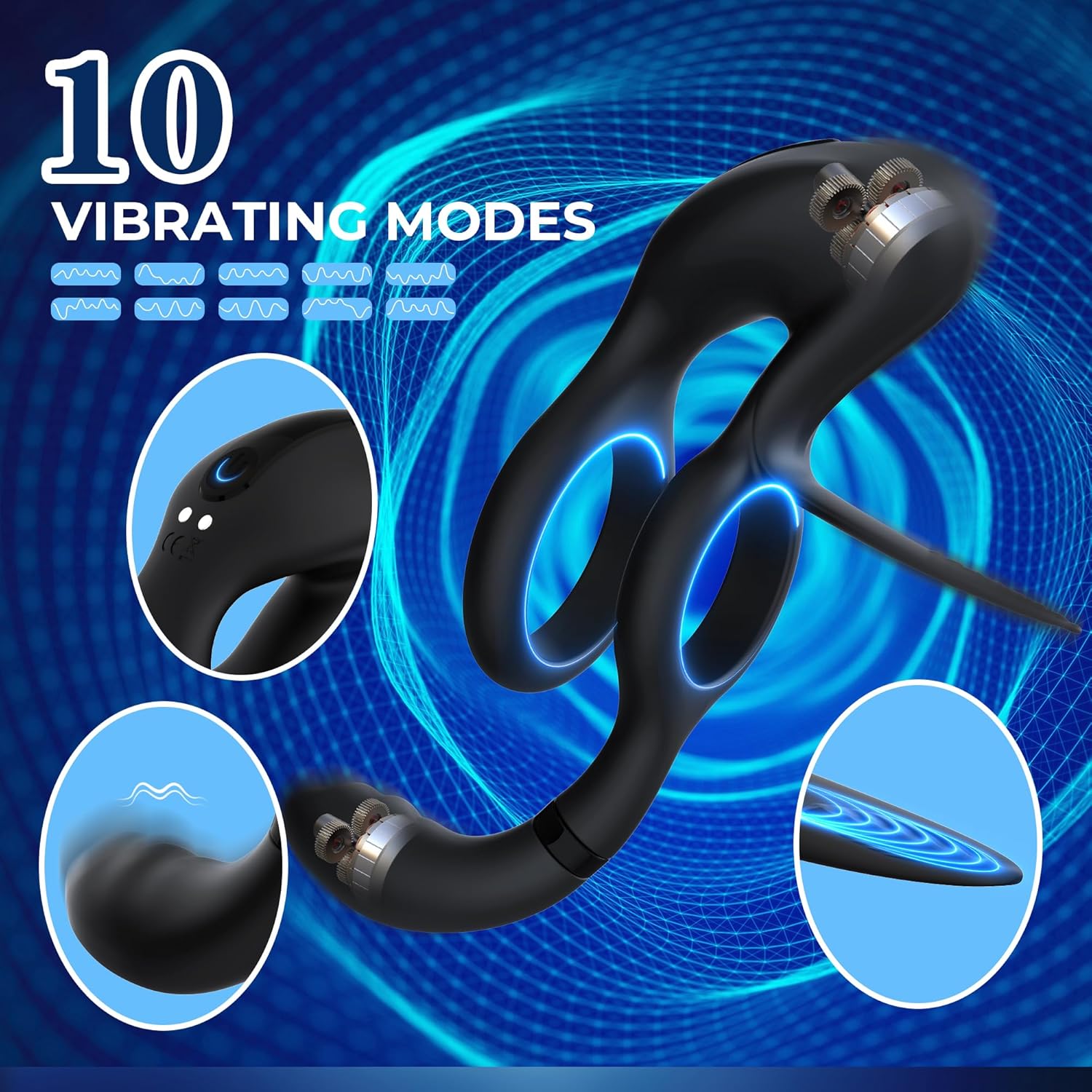 3-in-1 Vibrating Cock Ring – Clitoral Stimulator & 10-Mode Waterproof Toy