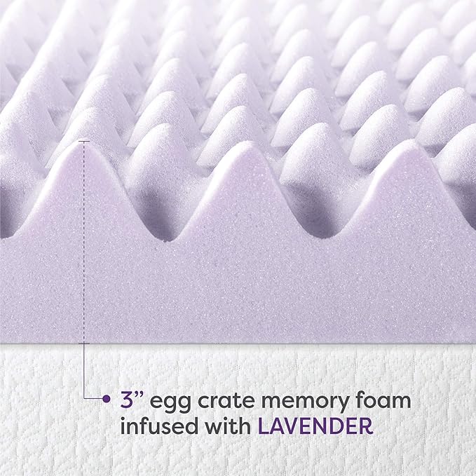 3 Inch Egg Crate Memory Foam Mattress Topper with Soothing Lavender Infusion, CertiPUR-US Certified, Twin
