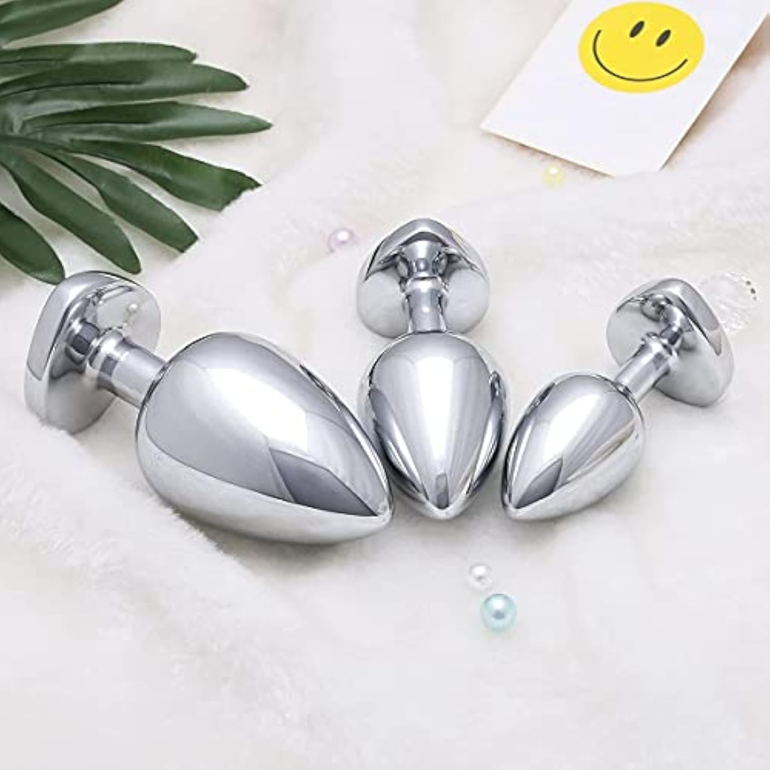 3 Pcs Luxury Jewelry Design Fetish Heart Metal Anal Butt Plug(Mixed-1)