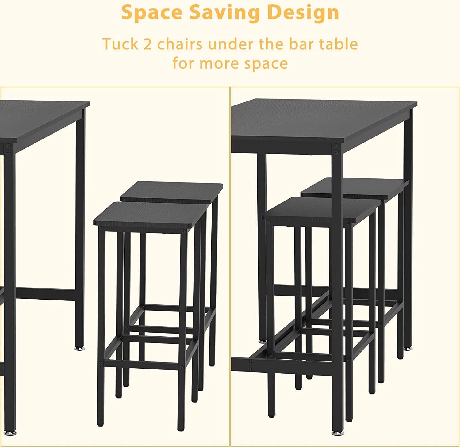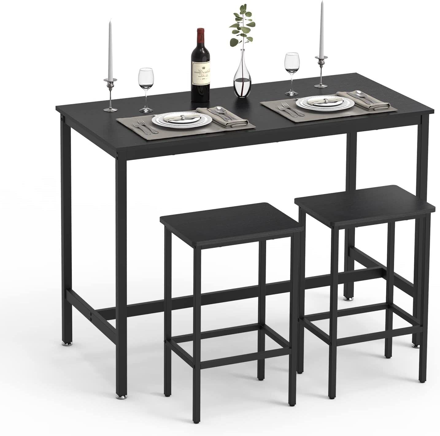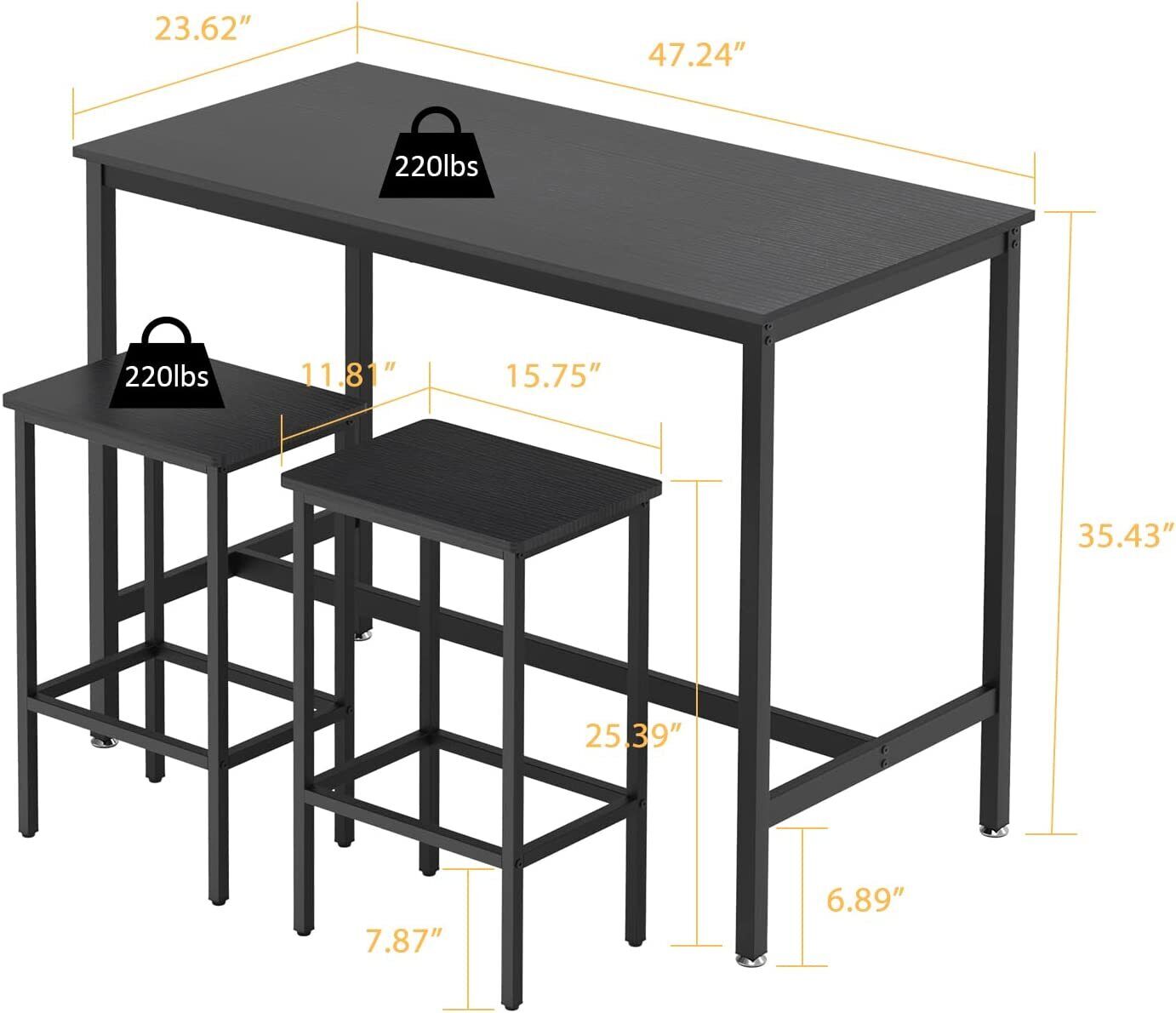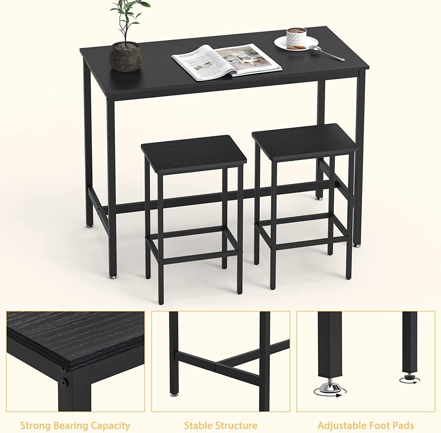 3-Piece Breakfast Table Set, Counter Height Dining Bar Table And 2 Chairs, Black